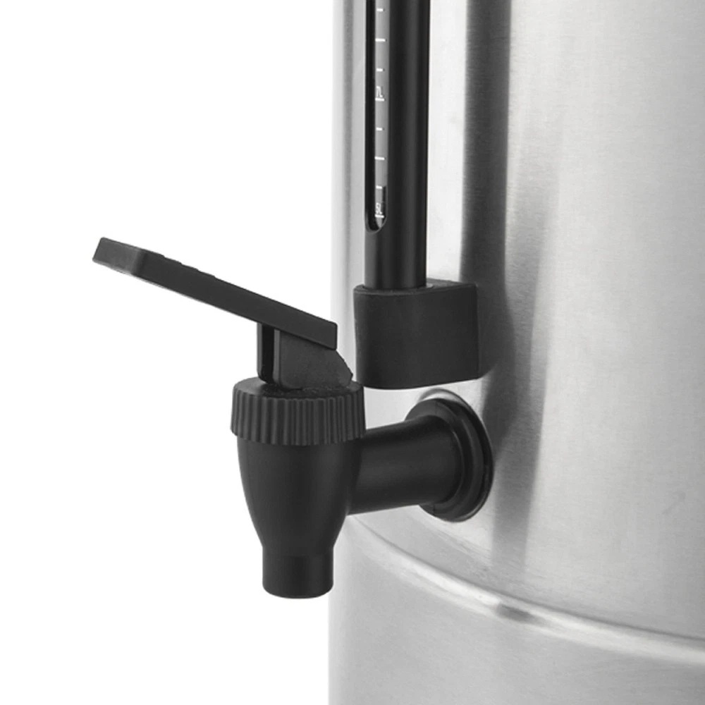 Built with heavy-duty 304 stainless steel, the boiler features a polished silver finish that resists corrosion and stands up to daily commercial use. A clear water level gauge allows easy monitoring, while the non-drip faucet ensures smooth, mess-free dispensing for tea, coffee, and other hot beverages.