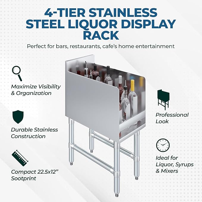 4-Tier Stainless Steel Liquor Display Rack Commercial Bar Bottle Organizer & Countertop Display Stand
