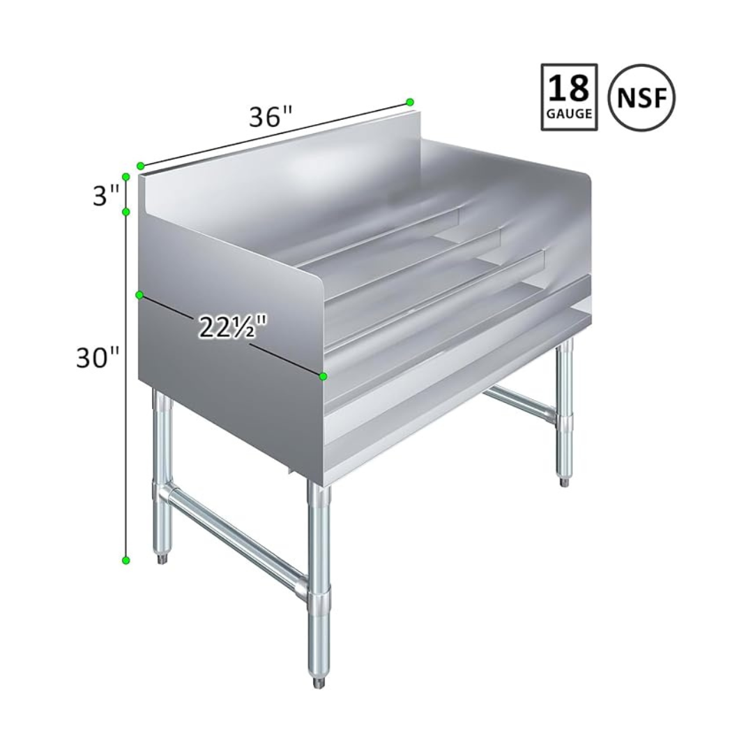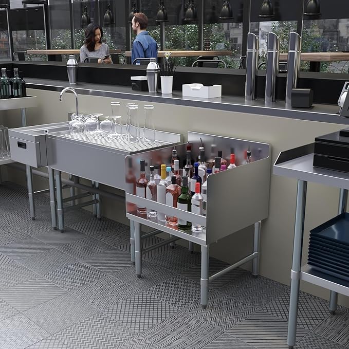 Integrated bottle guard rails help keep liquor bottles, syrups, and mixers securely in place, reducing clutter and preventing slips. With its clean, modern metal finish, this rack enhances your bar’s professional appearance while supporting a smoother workflow.