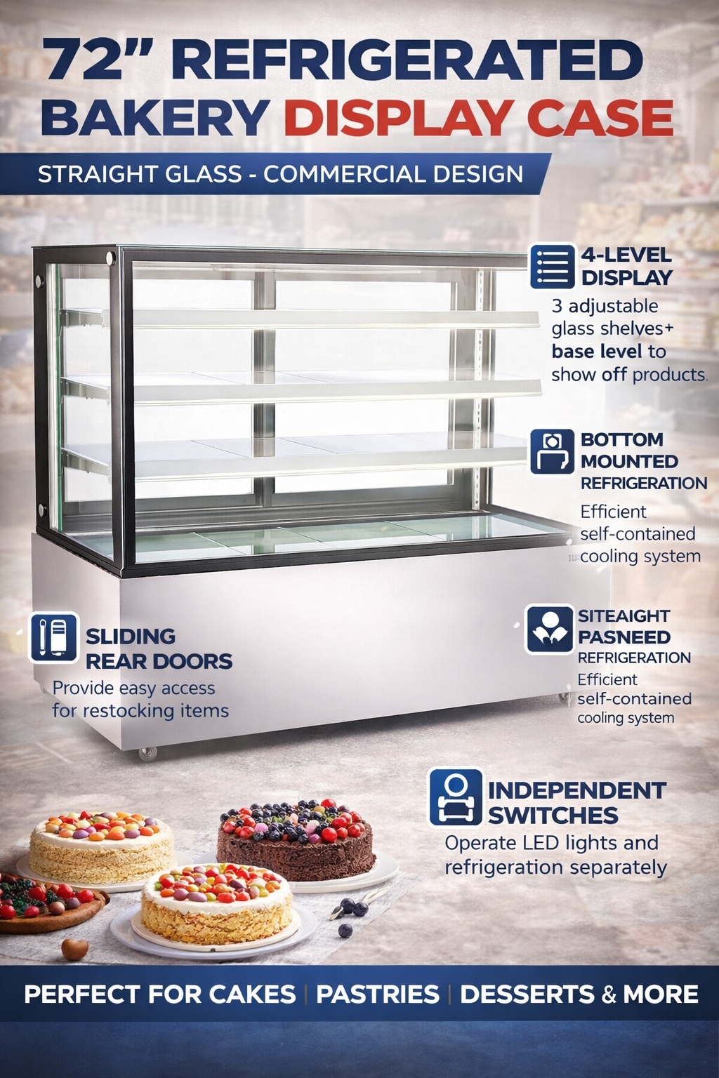Premium 72″ Refrigerated Bakery Display Case – Straight Glass Cake & Pastry Merchandiser