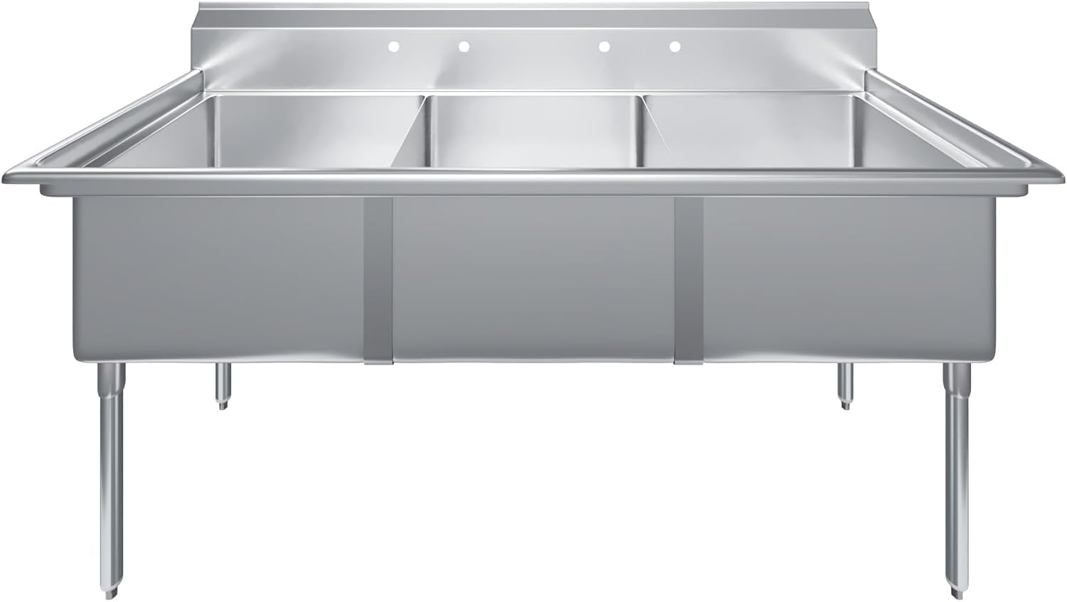 Ideal for restaurants, bakeries, cafeterias, food trucks, and industrial kitchens, the 78 in. x 30 in. Stainless Steel Three Compartment Sink meets NSF standards for food safety and sanitation, guaranteeing top-tier quality and reliability for your commercial operations.