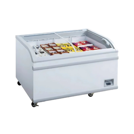 • 48-Inch Curved Glass Display: Eye-catching curved tempered glass offers high product visibility and enhances customer experience.
