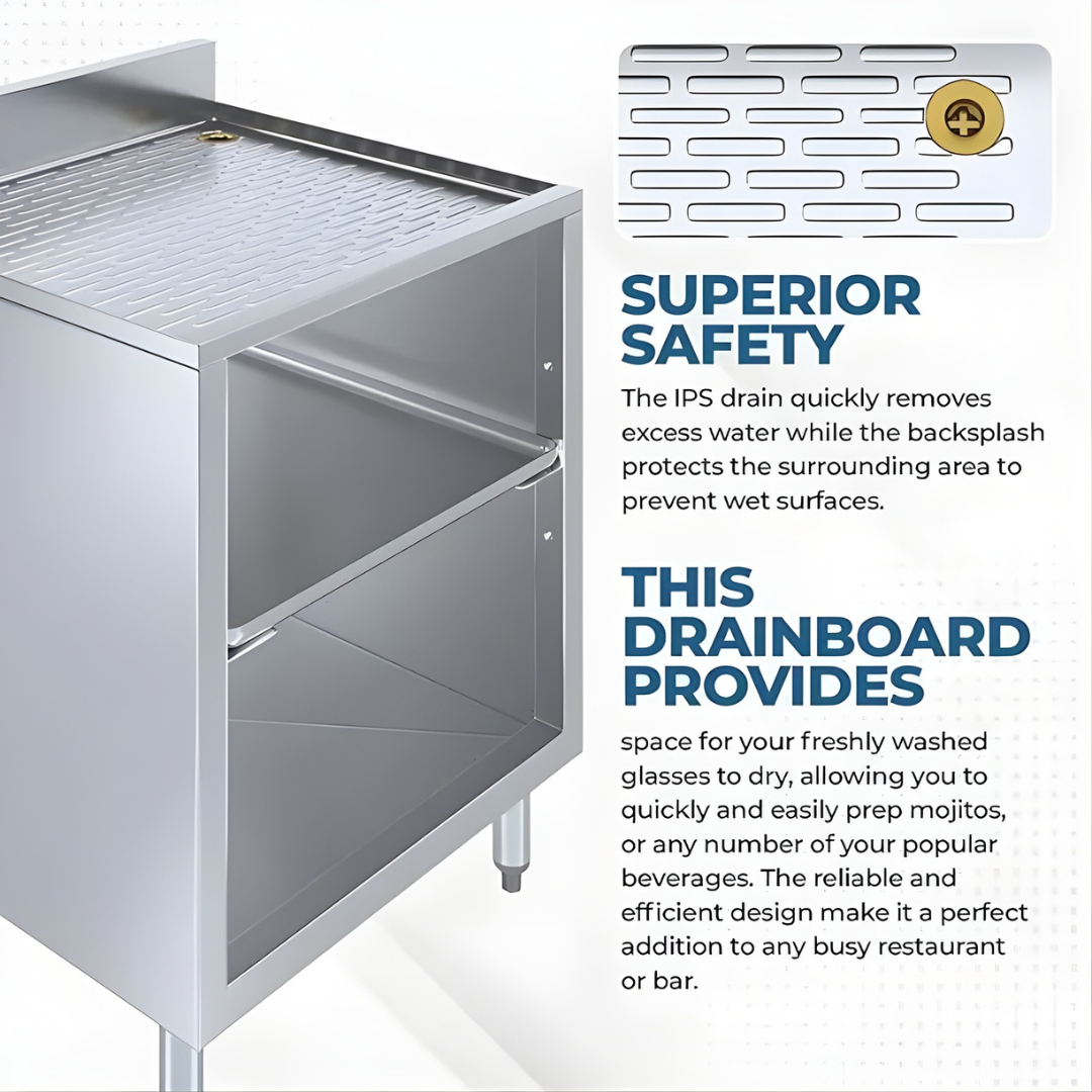 Whether you’re managing a fast-paced bar or upgrading your beverage prep area, the Express-KitchQuip Commercial Drip Tray Cabinet and Stainless Steel Bar Station offers the durability, organization, and performance you need to keep operations running efficiently.