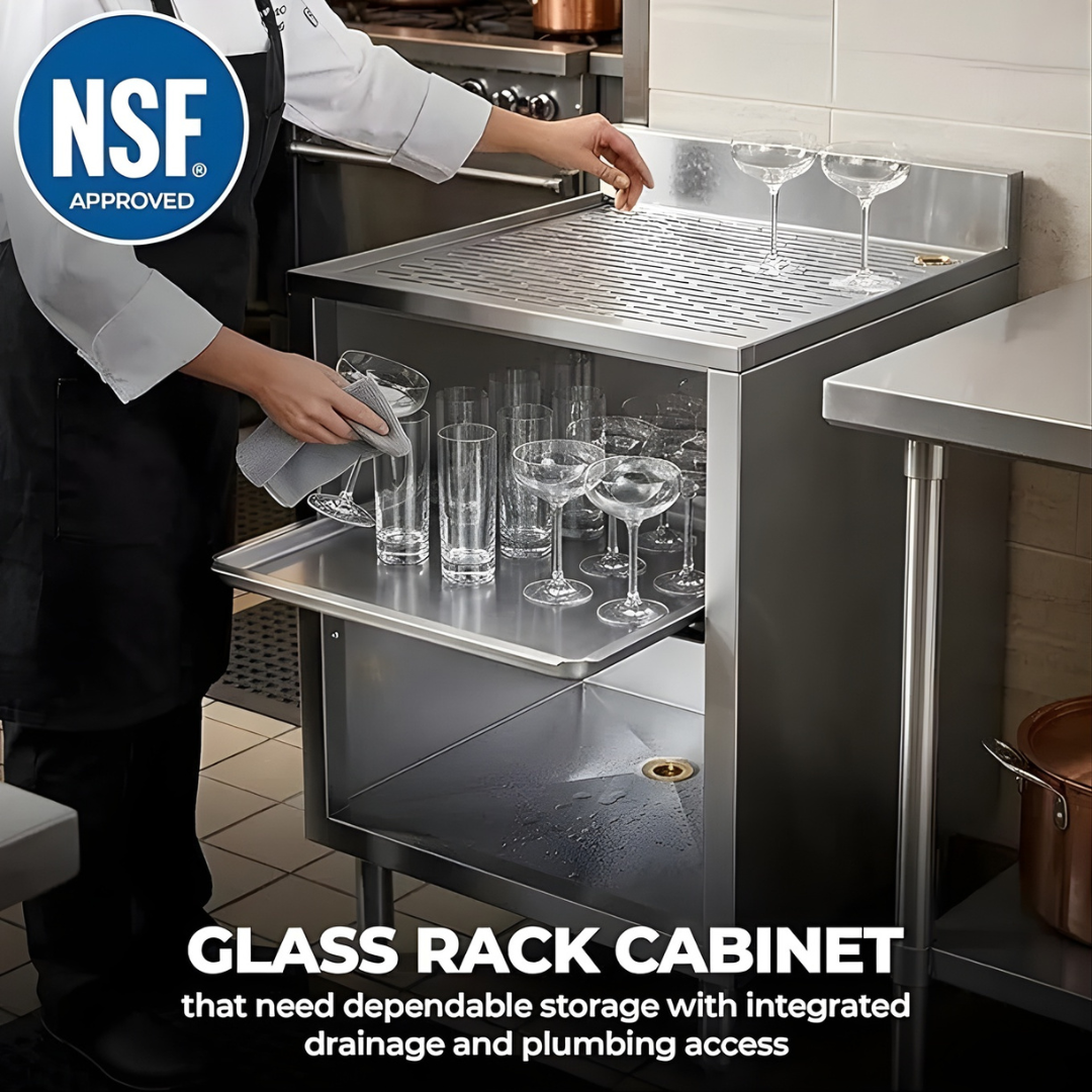 NSF certified for commercial use, this commercial drip tray cabinet meets strict industry standards for safety and sanitation, making it a trusted choice for professional foodservice environments.