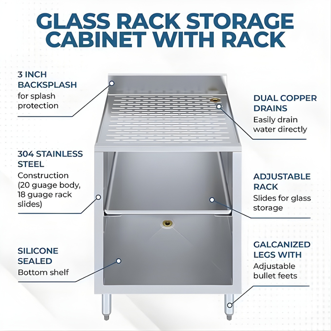 Best Commercial Drip Tray Cabinet – Stainless Steel Glass Rack Storage Cabinet with Built-In Rack, Commercial Glass Holder Organizer for Bar, Restaurant, and Kitchen Standard Rack