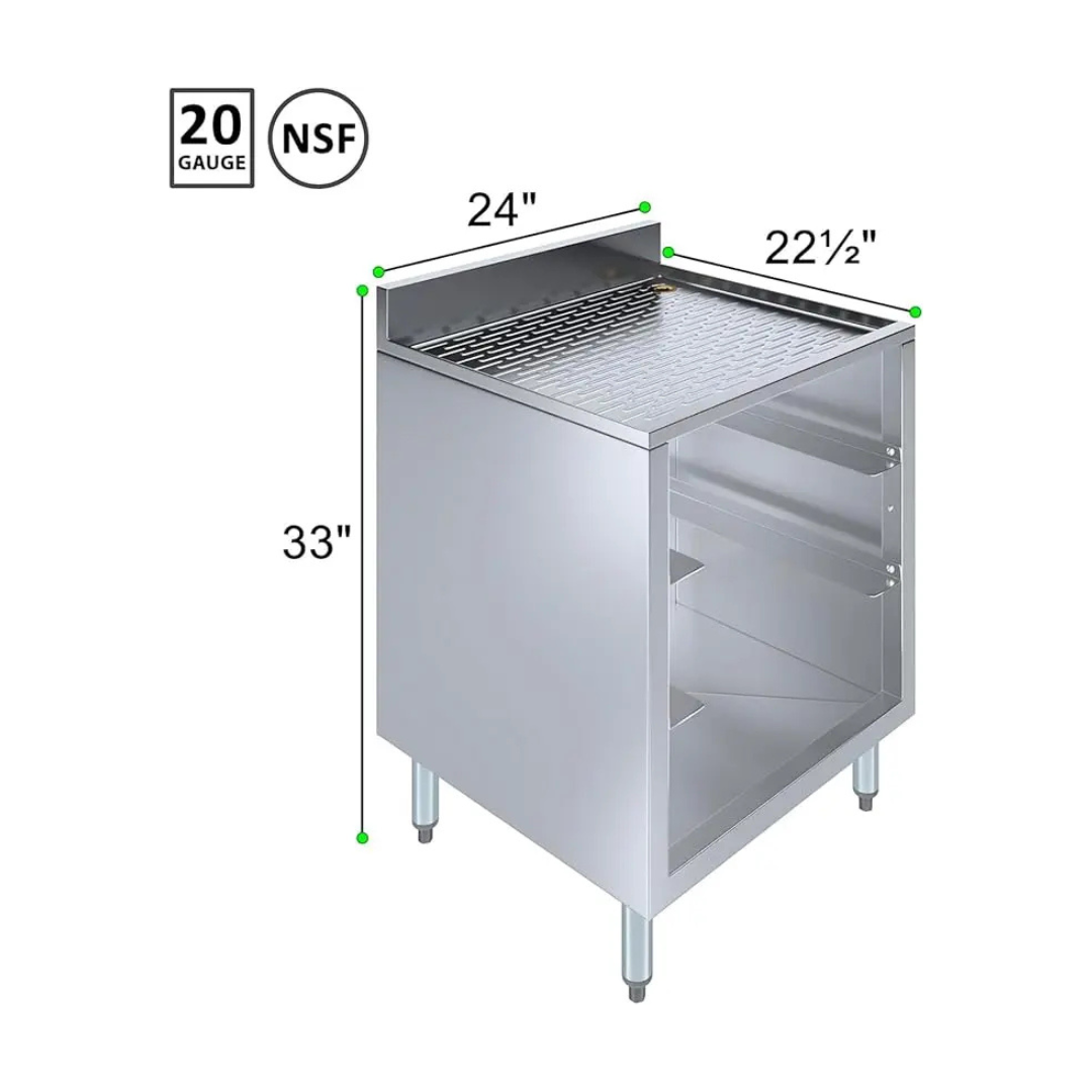 Constructed from premium 304 stainless steel, this commercial drip tray cabinet delivers outstanding strength and long-lasting resistance to rust and corrosion. The reinforced corrugated work surface adds extra durability, allowing it to handle daily prep, service, and heavy-duty use without compromising performance.
