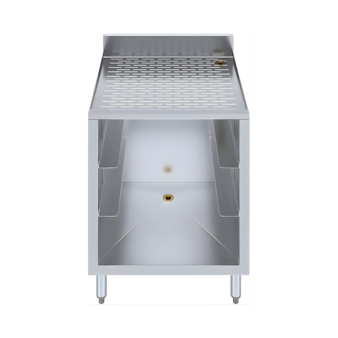 Designed with functionality in mind, this unit features adjustable stainless steel rack slides, giving you the flexibility to organize glassware, racks, and bar essentials based on your workflow. A dedicated plumbing access opening ensures hassle-free installation and compatibility with standard setups, making it a practical addition to any commercial bar layout.