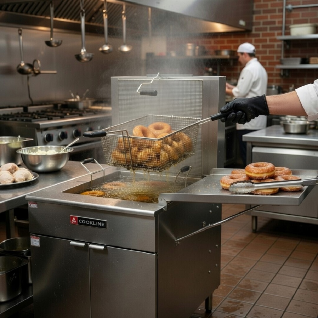 Flat Bottom Design – perfect for donuts, funnel cakes, and wet batter items