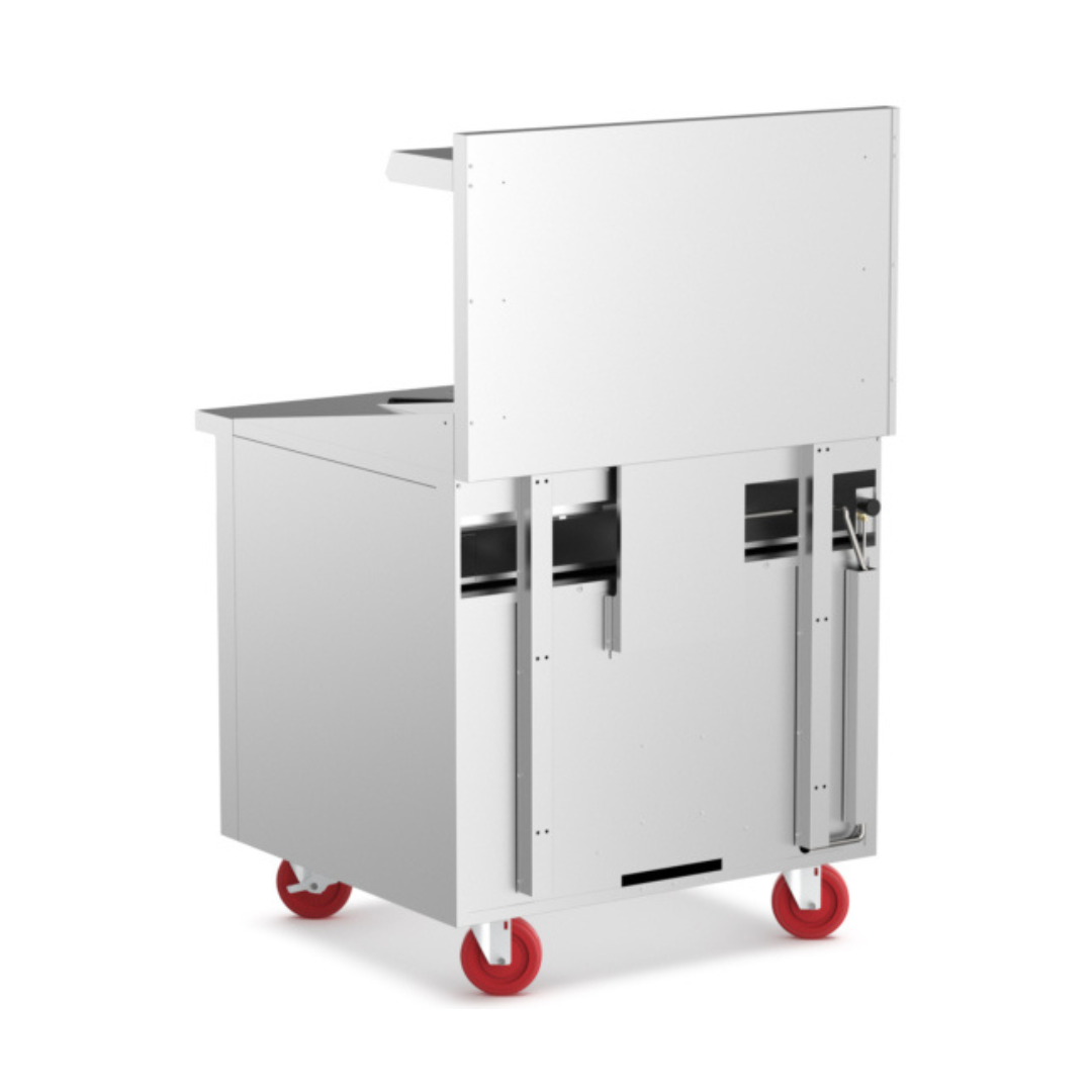 Comes equipped with casters for easy mobility and cleaning access. Two locking wheels keep the unit securely in place during operation, while optional legs are available for stationary setups.