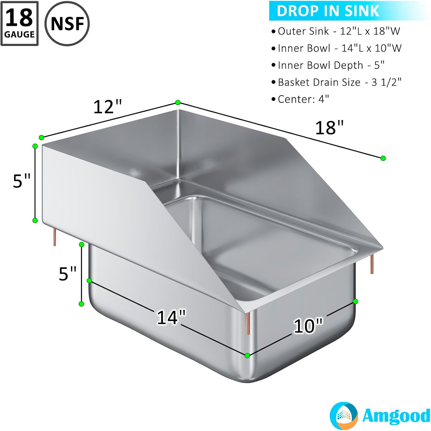 18 in. x 12 in. Drop-In Stainless Steel Sink with 10 in. x 14 in. Bowl.