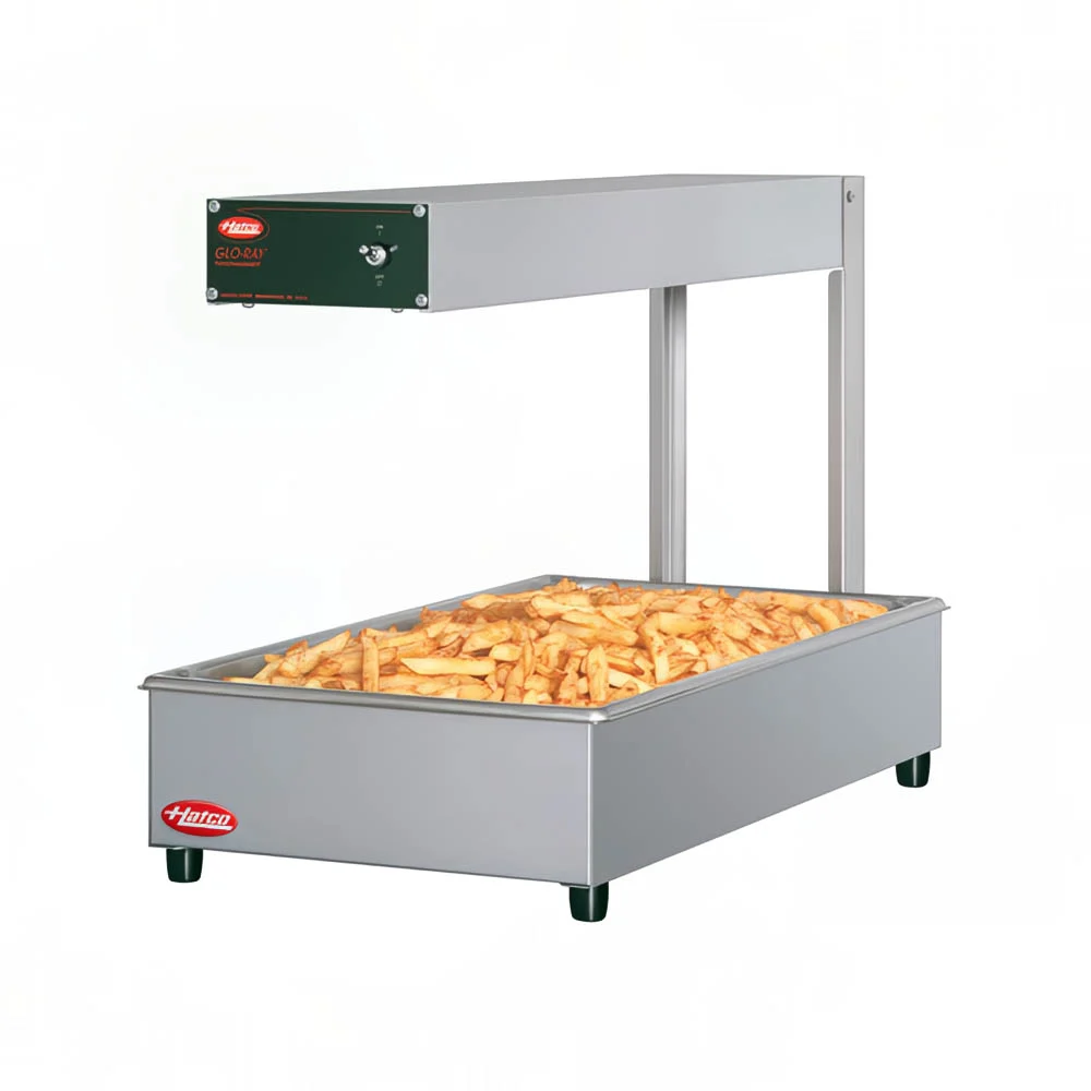The Hatco GRFF-120-T-QS portable food warmer keeps food at a safe temperature until it reaches the customers. This model uses a stand to keep food pans off the work area. Customers or staff can easily access food from three sides. The metal-sheathed heating elements are guaranteed to not burn out or break for two years. Food quality is maintained by using pre-focused heat patterns that ensure precise temperature controls. A 6-foot cord with a plug is pre-wired at the factory for easy installation. Whether you use it to hold french fries, pastries, or whole plates of food, the Hatco GRFF-120-T-QS portable food warmer will hold your food at safe serving temperatures.
