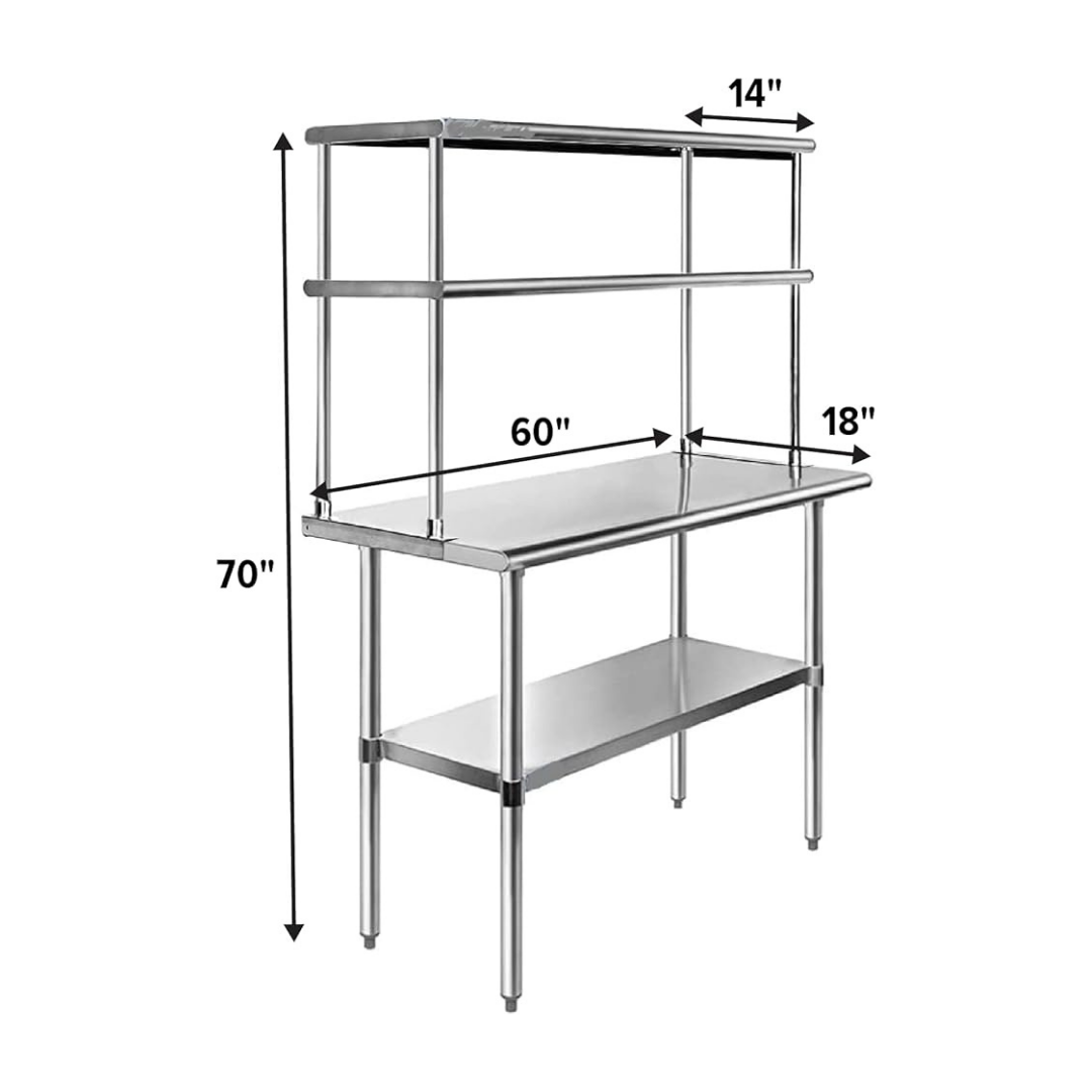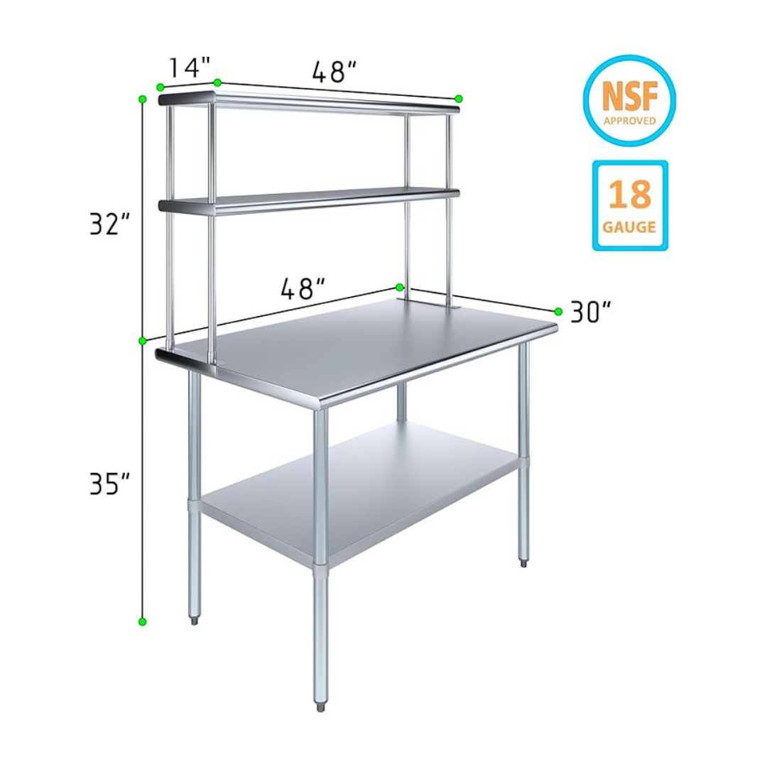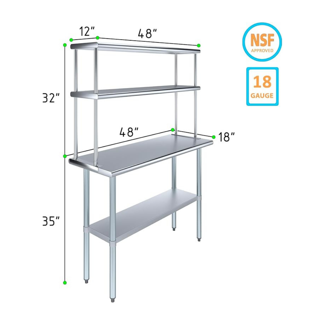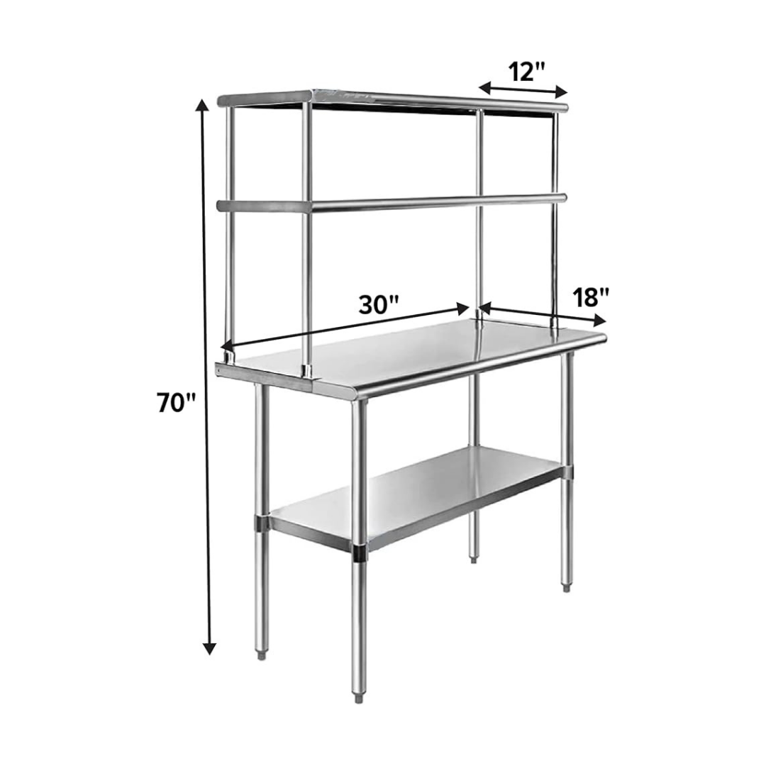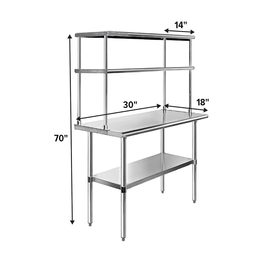 Stainless Steel Prep Work Table with Overshelf – Commercial Kitchen Workstation