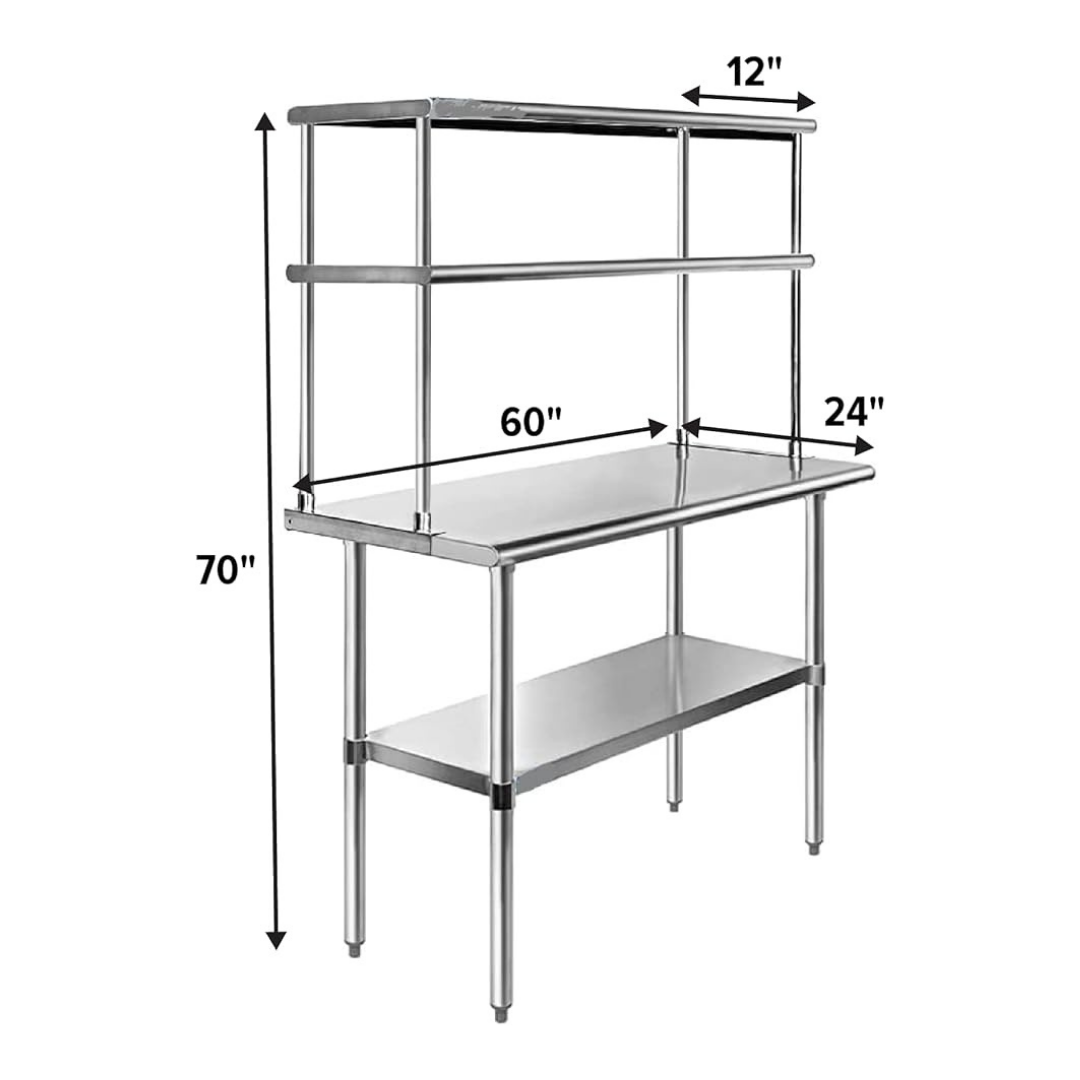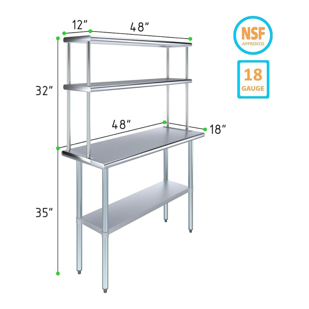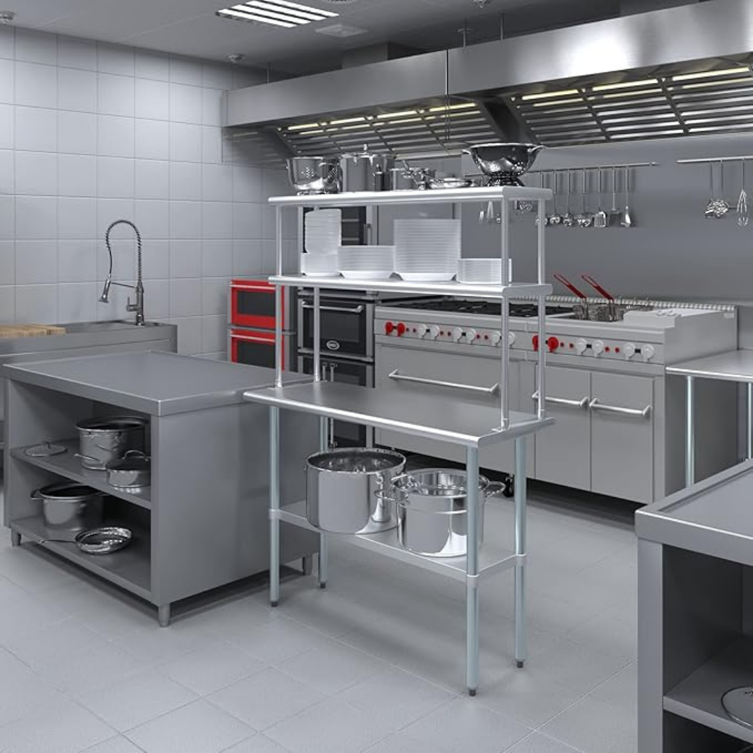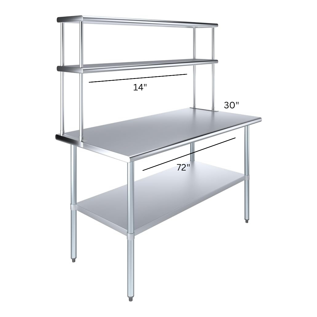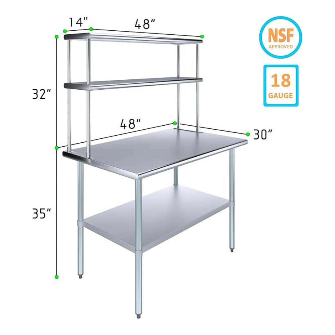 Stainless Steel Prep Work Table with Overshelf – Commercial Kitchen Workstation