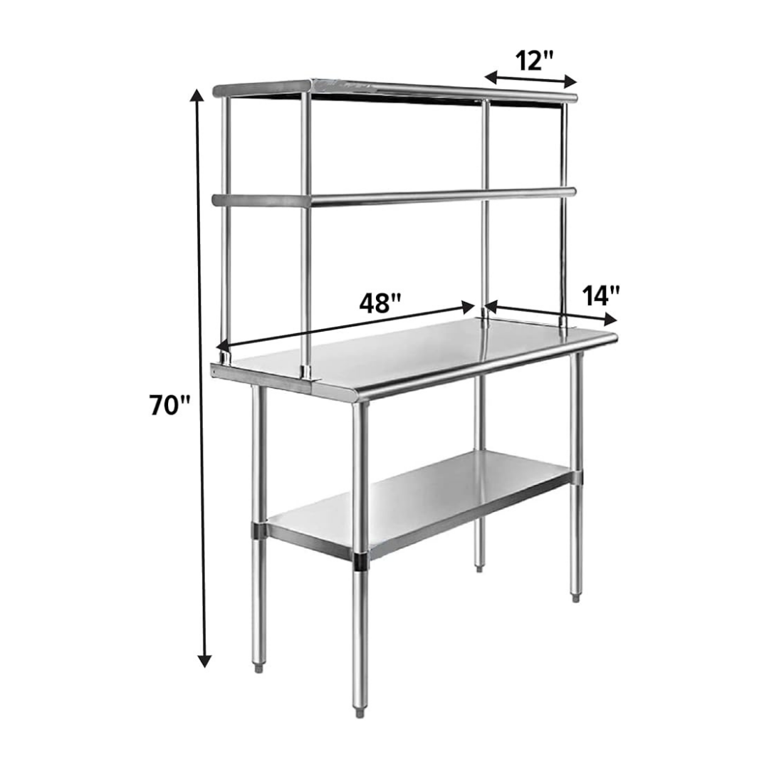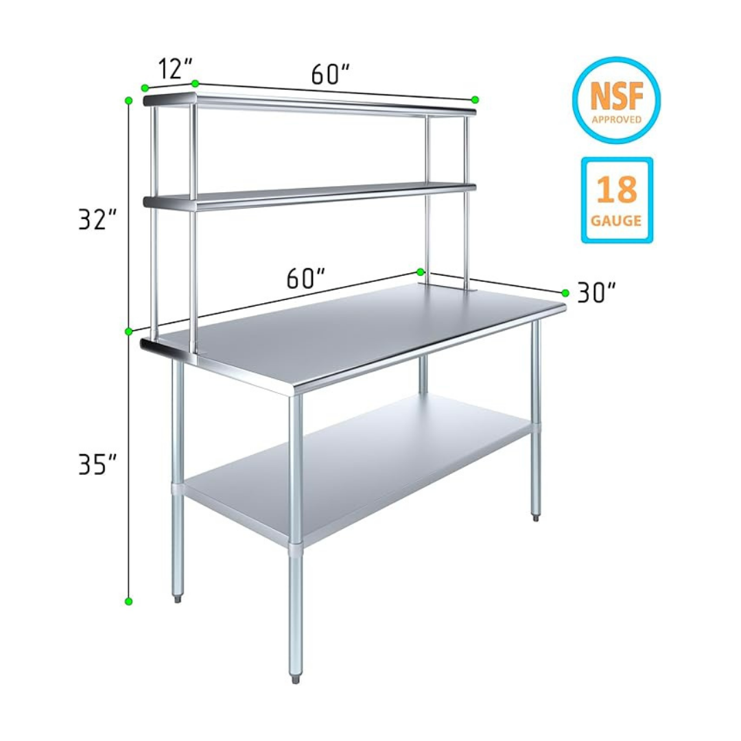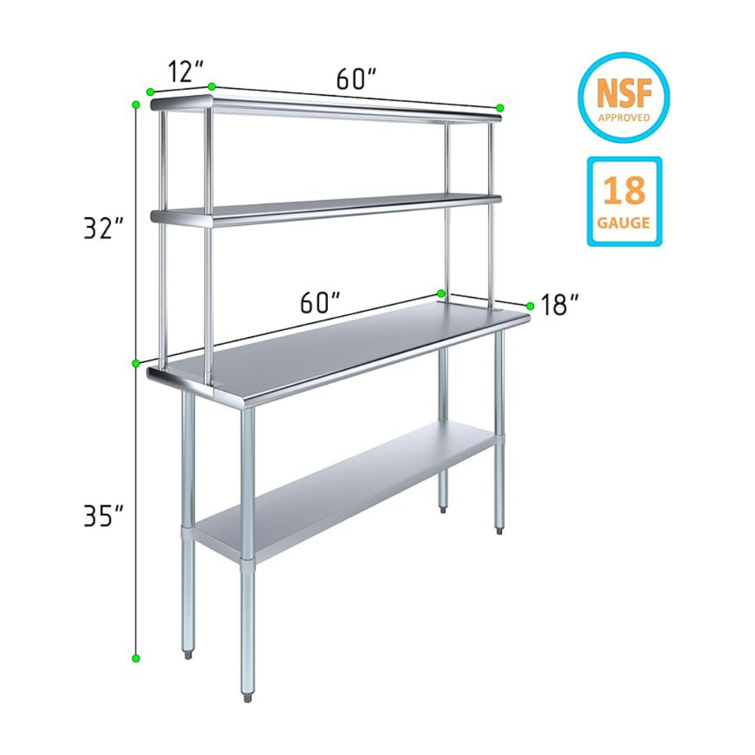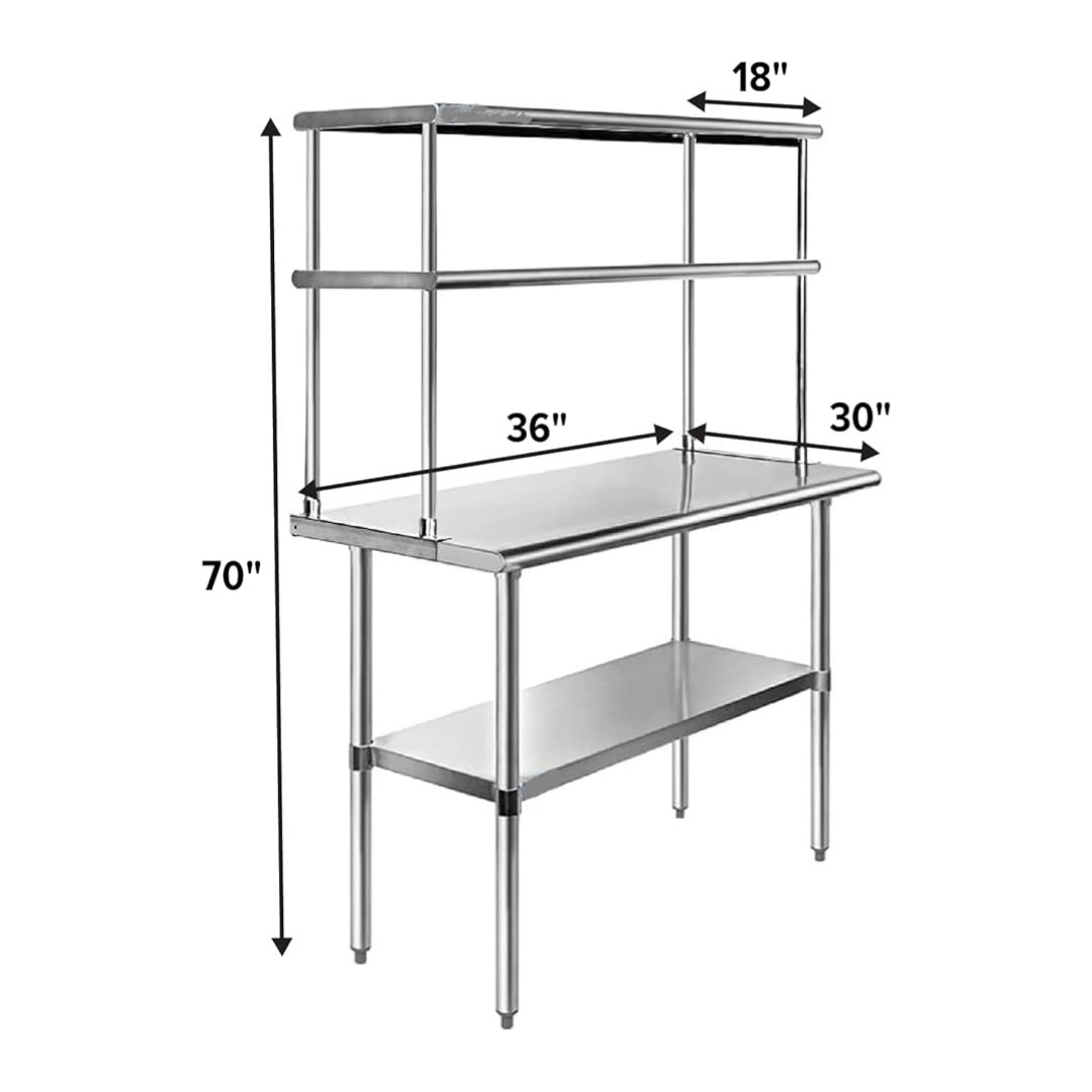Stainless Steel Prep Work Table with Overshelf – Commercial Kitchen Workstation