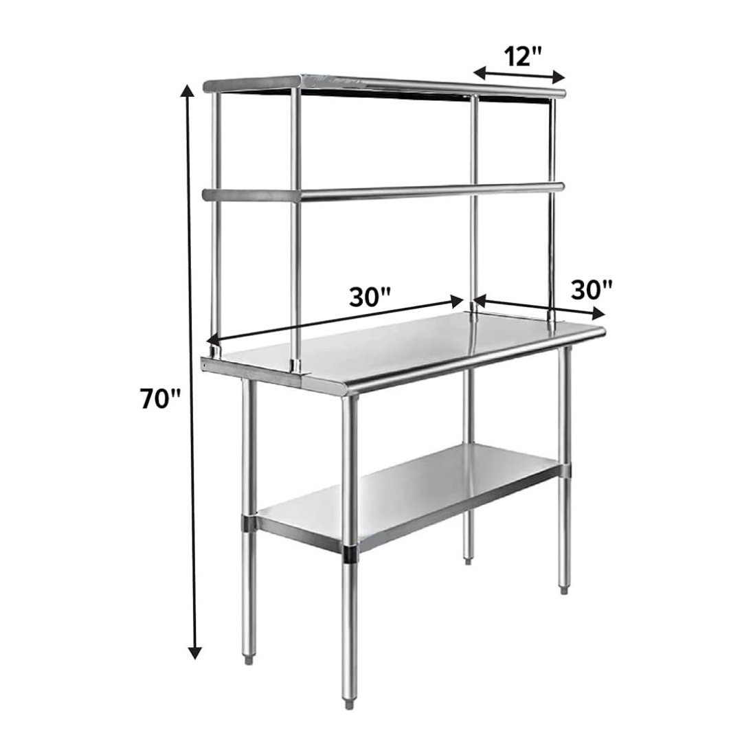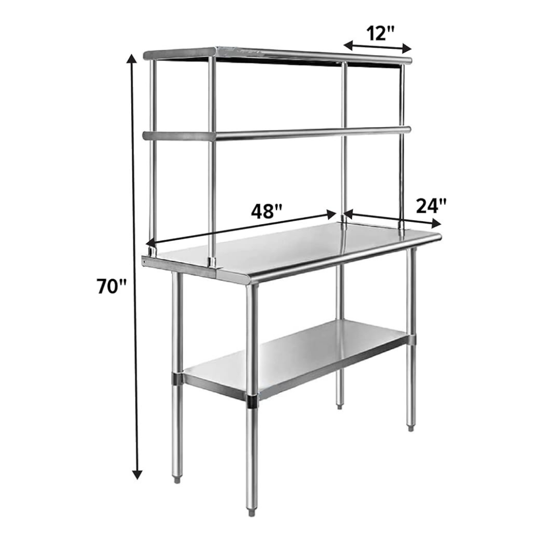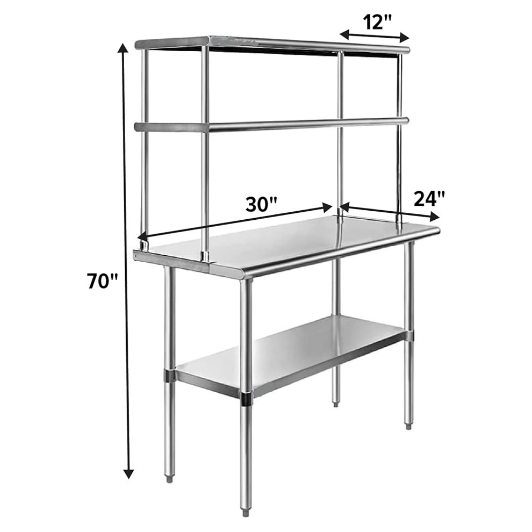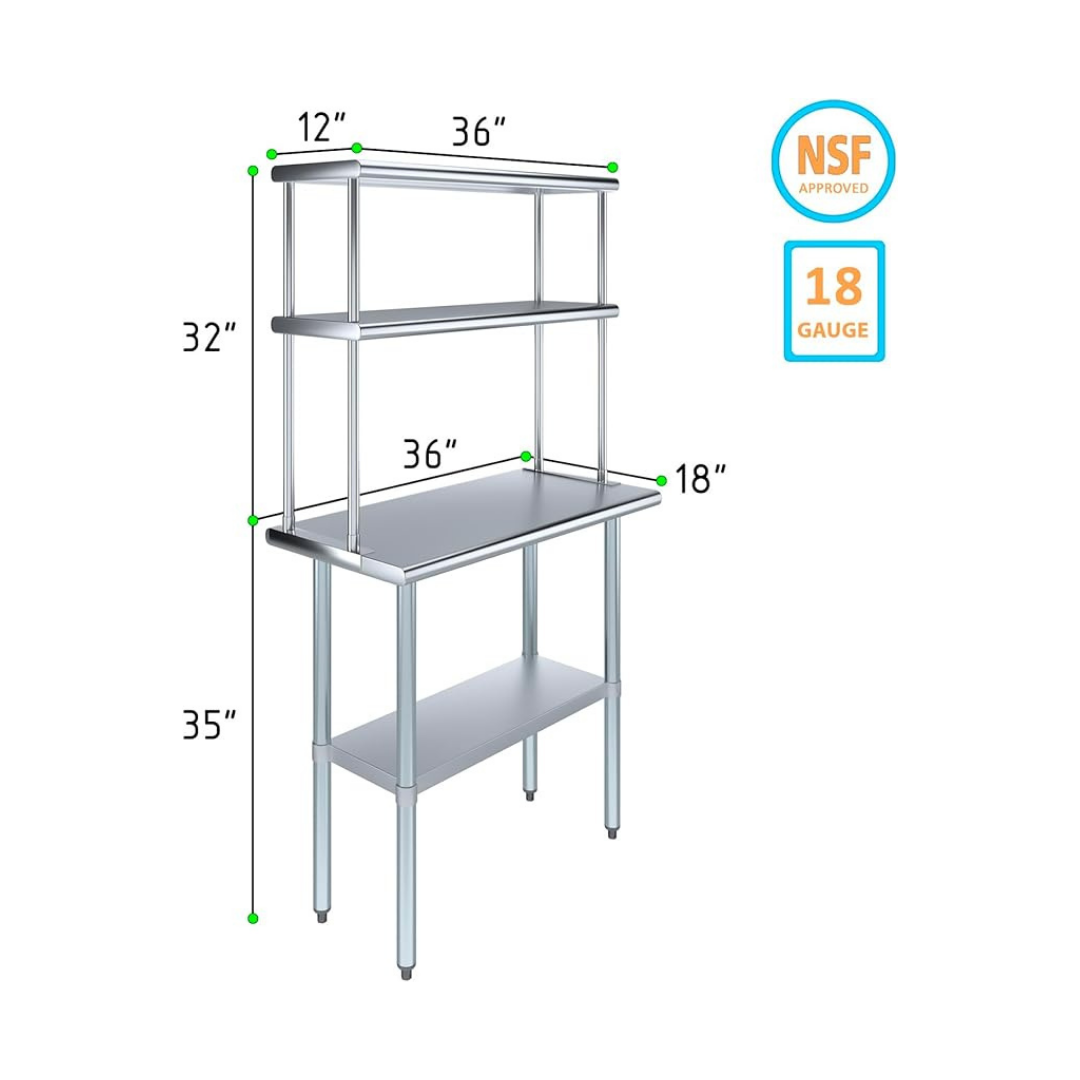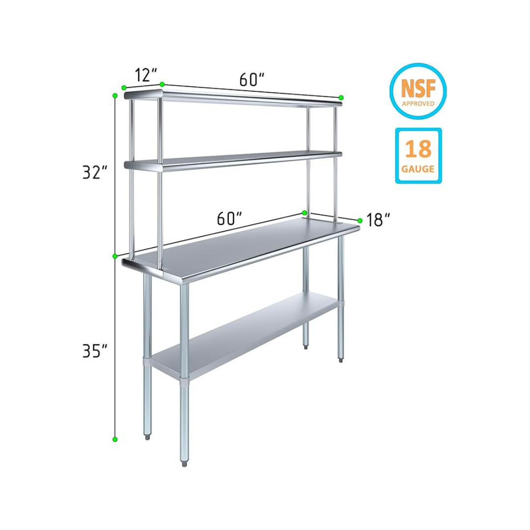 Stainless Steel Prep Work Table with Overshelf – Commercial Kitchen Workstation