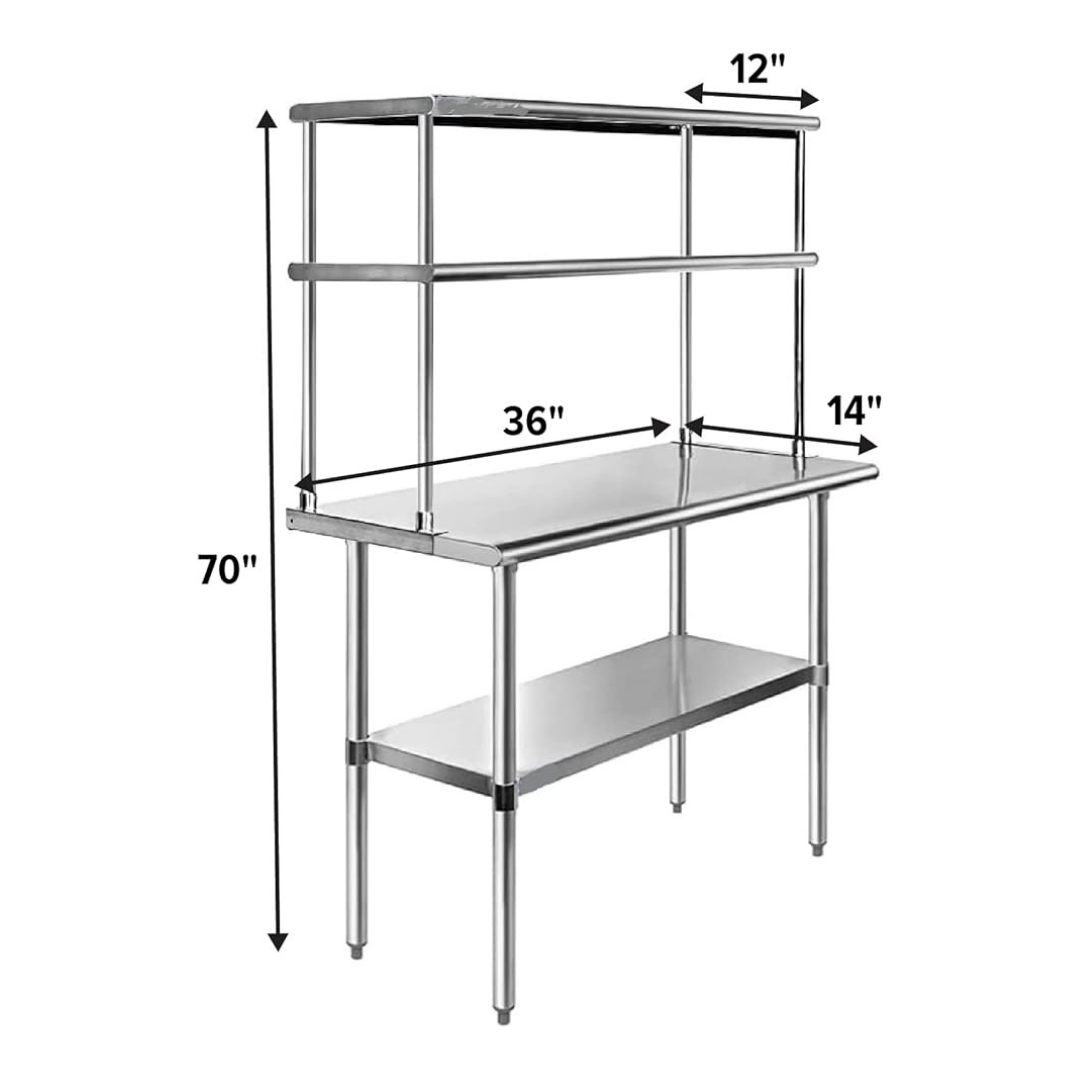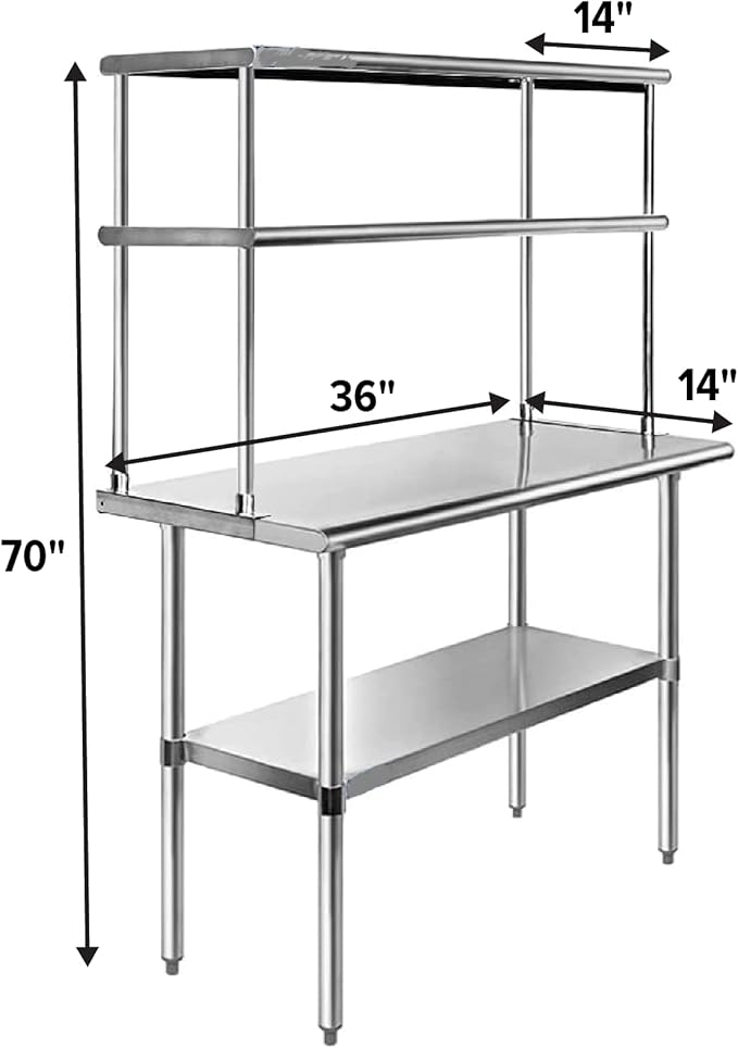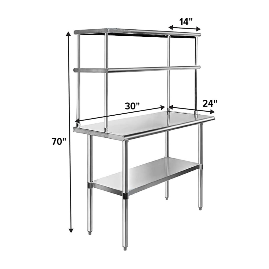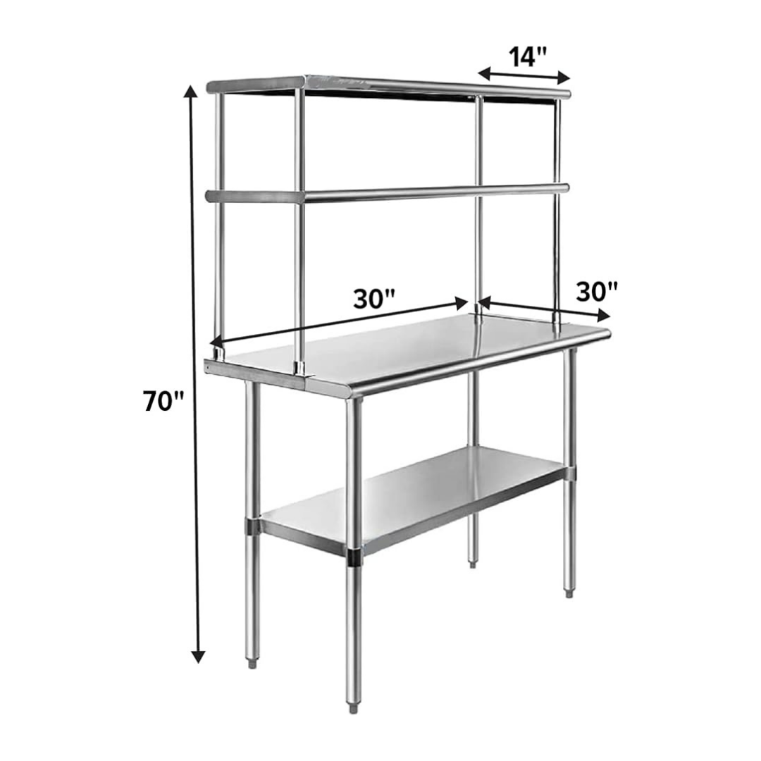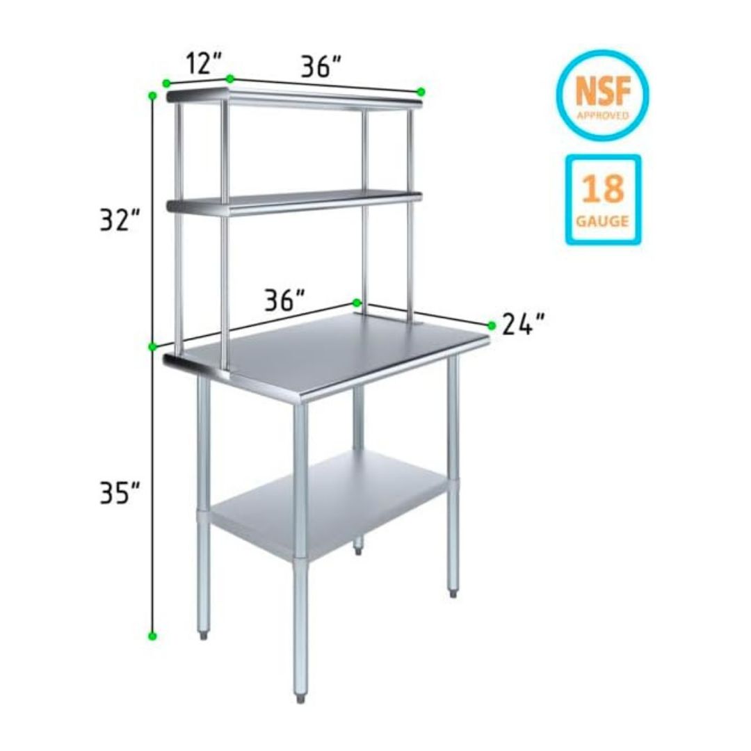 Stainless Steel Prep Work Table with Overshelf – Commercial Kitchen Workstation