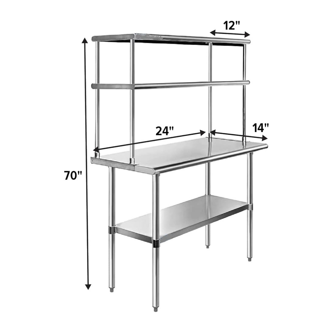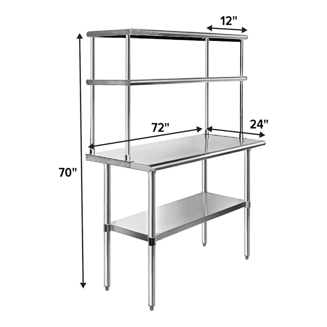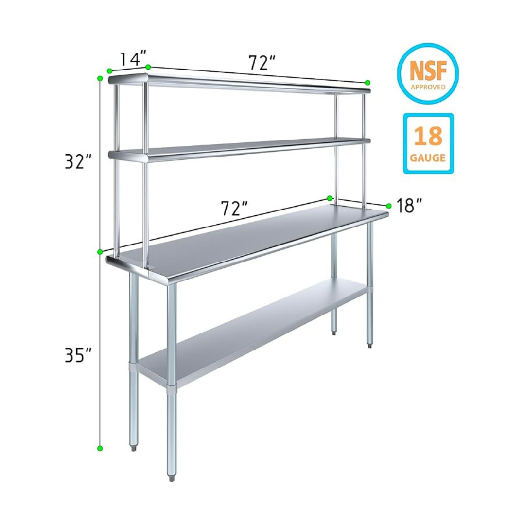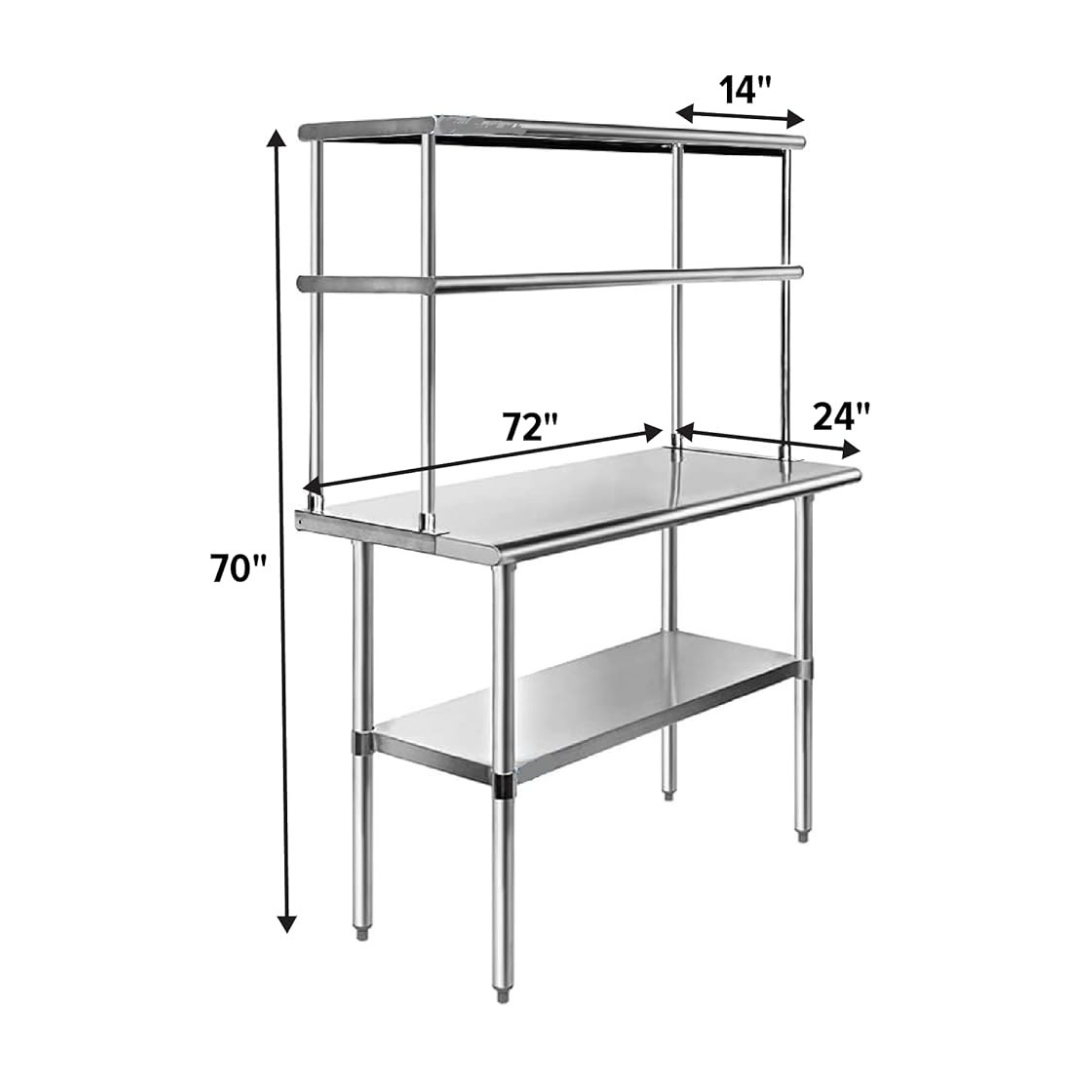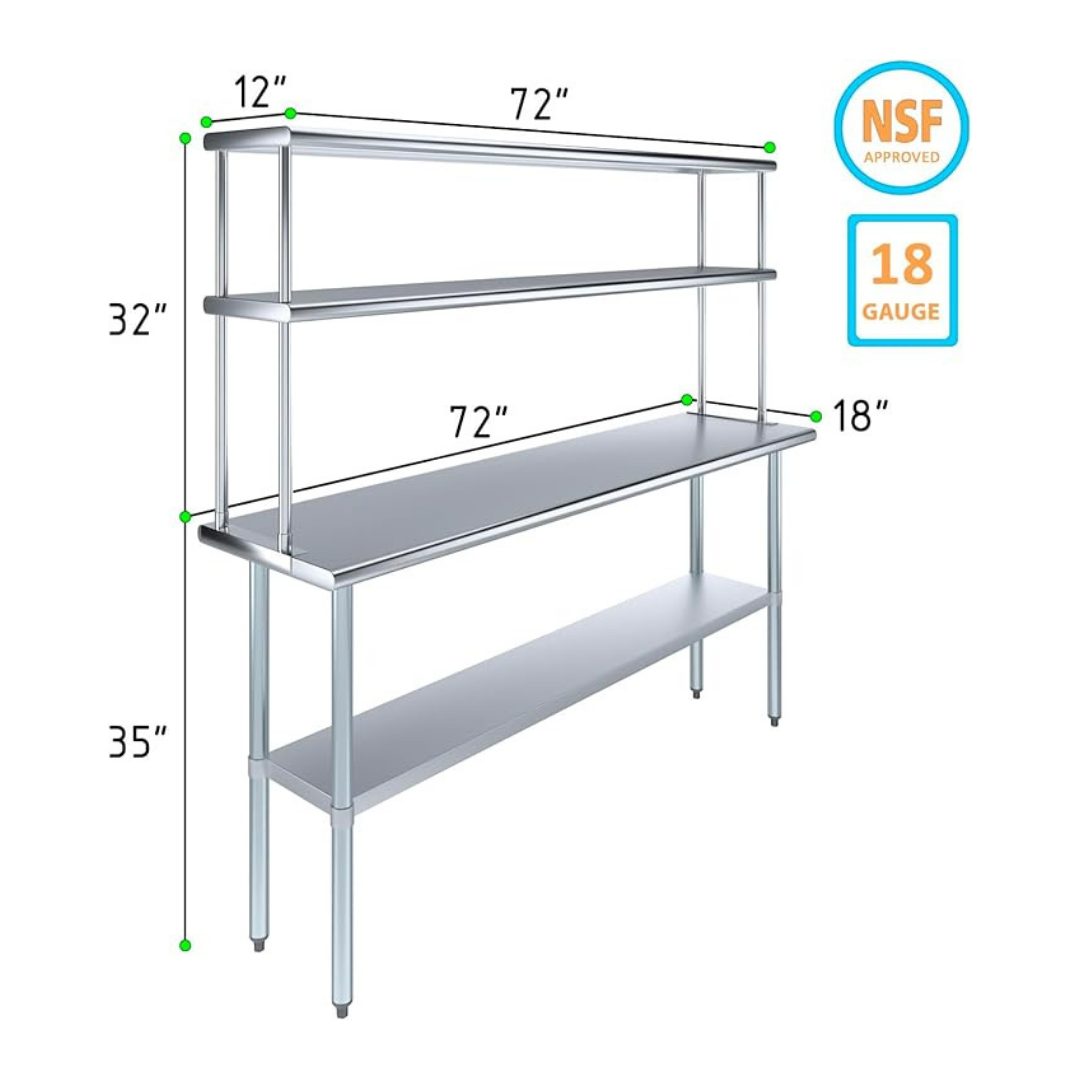 Stainless Steel Prep Work Table with Overshelf – Commercial Kitchen Workstation