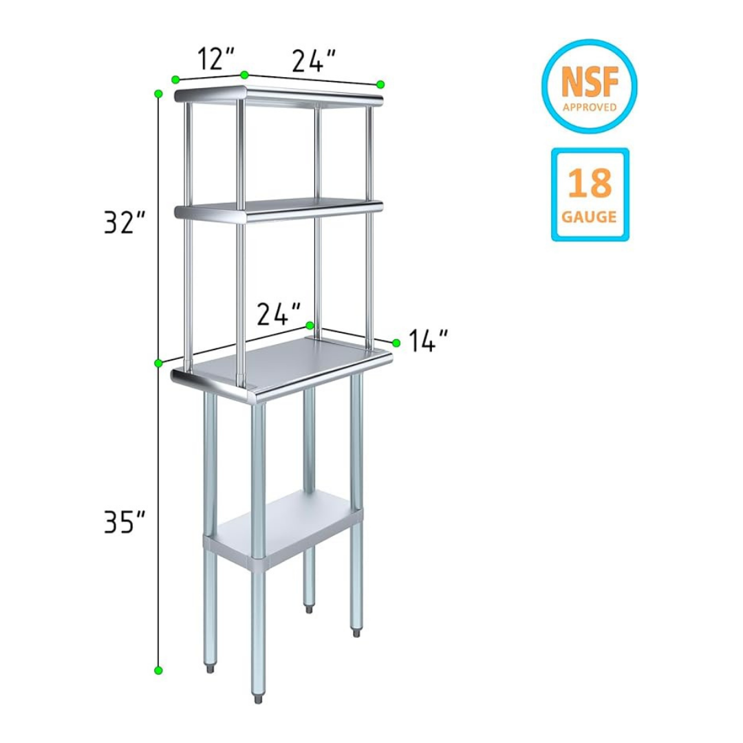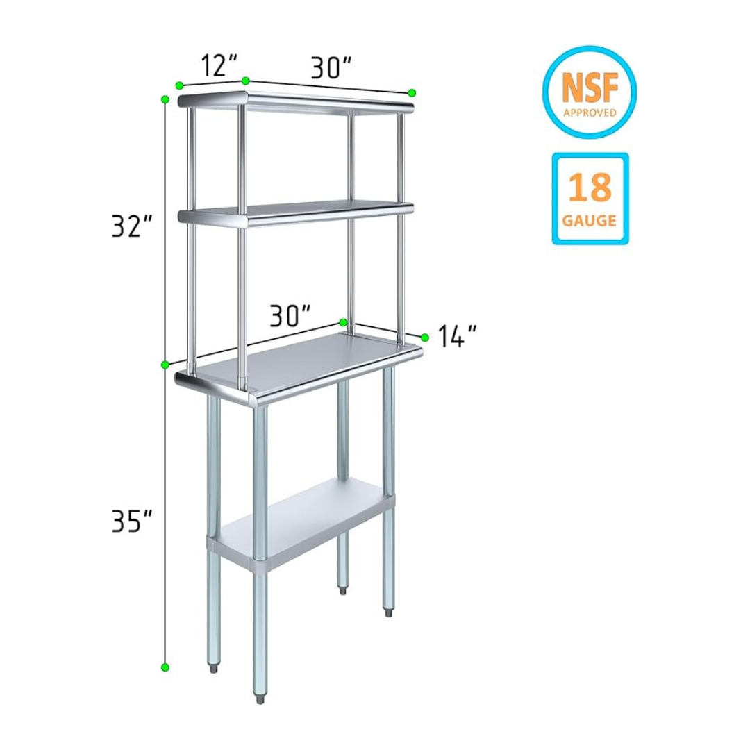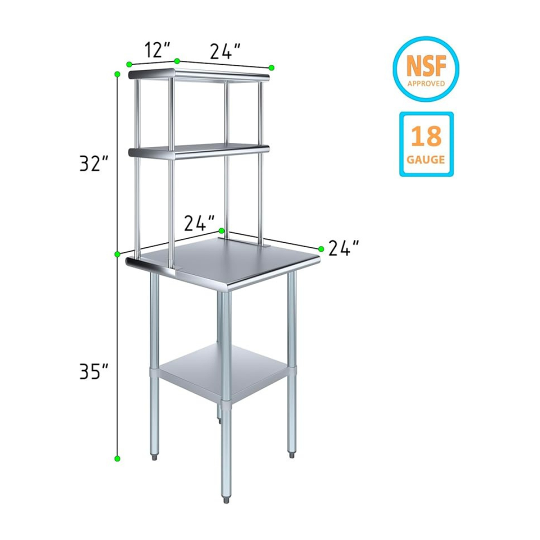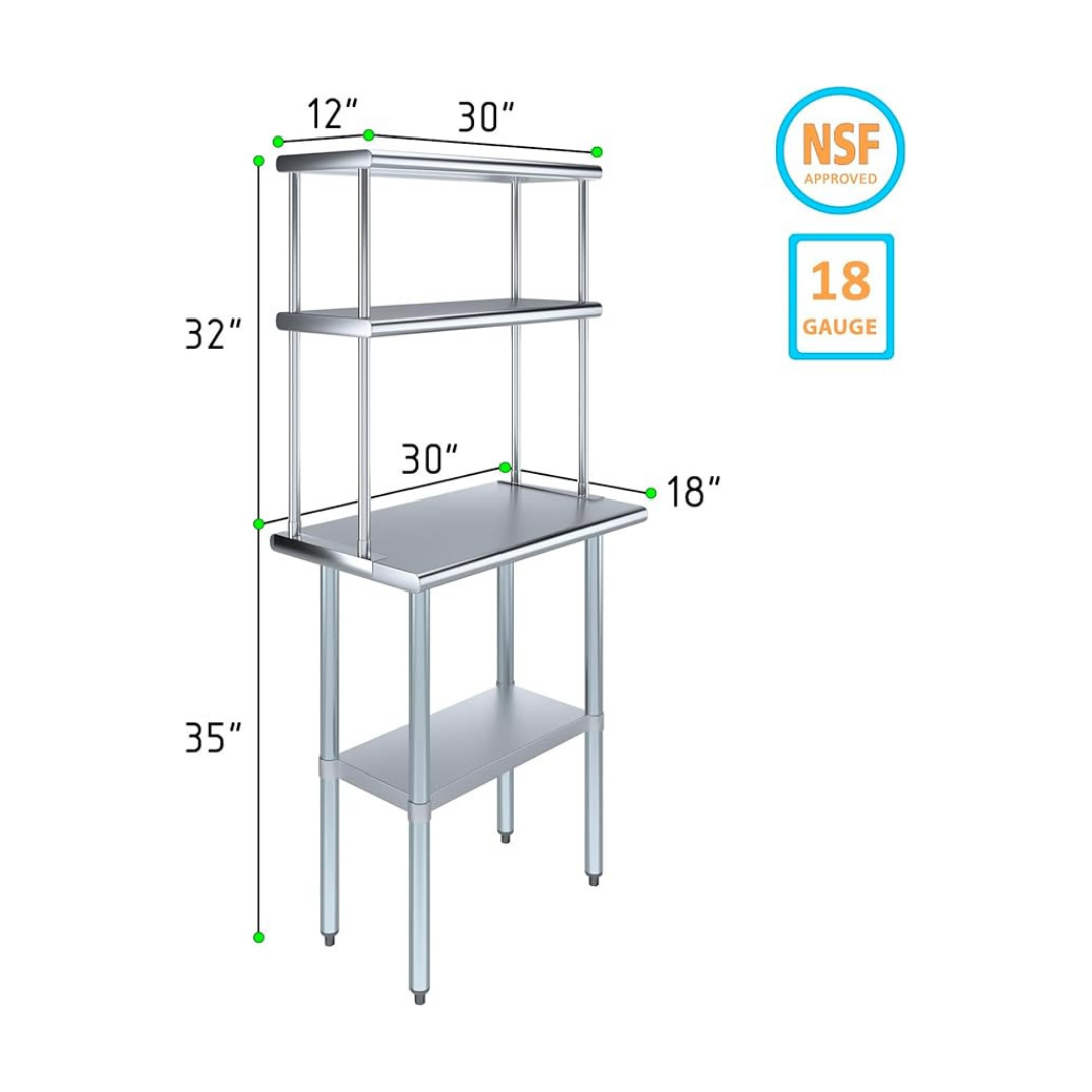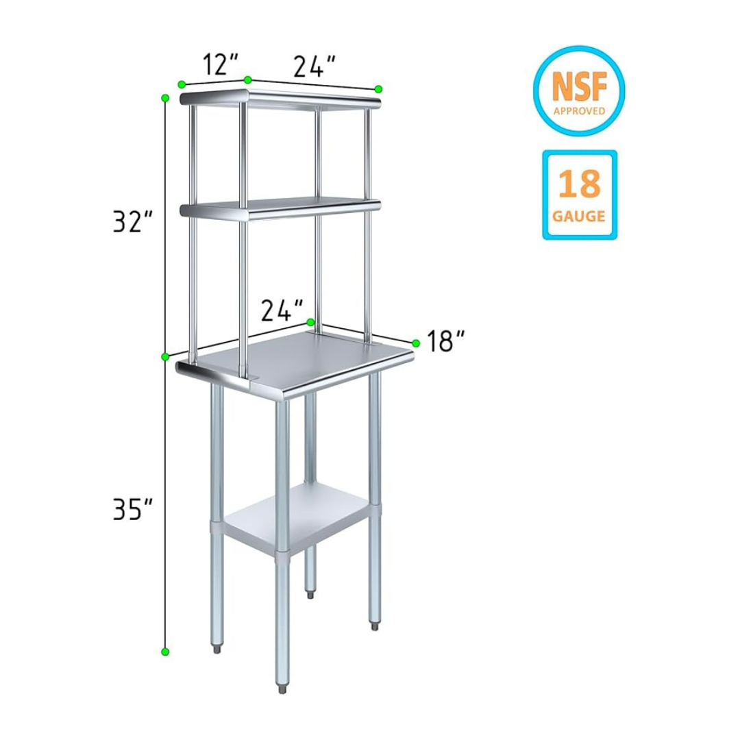 Stainless Steel Prep Work Table with Overshelf – Commercial Kitchen Workstation
