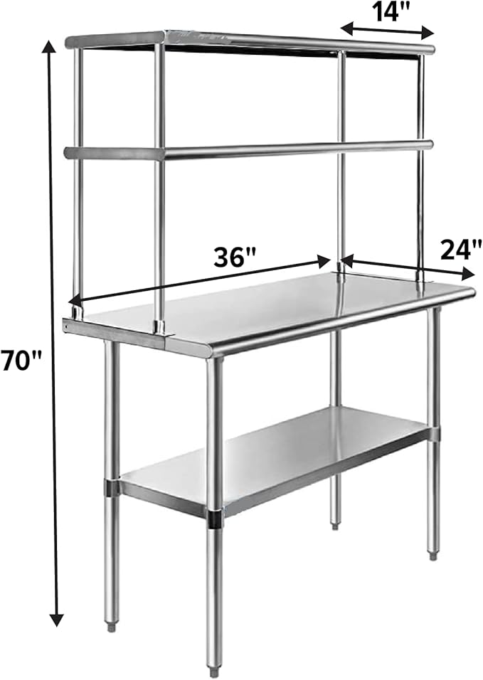 NSF Approved Heavy Duty Stainless Steel Prep Work Table with Adjustable Undershelf for Kitchens Utility Rooms Storage Offices & Home