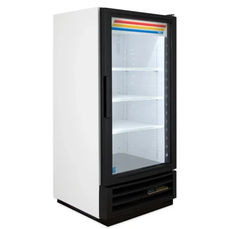 Compact and energy-efficient, this glass door merchandiser keeps beverages and packaged foods chilled at 33–38°F. With bright LED lighting, adjustable shelves, and eco-friendly R290 refrigeration, it delivers reliable cooling while showcasing products clearly to drive impulse sales.