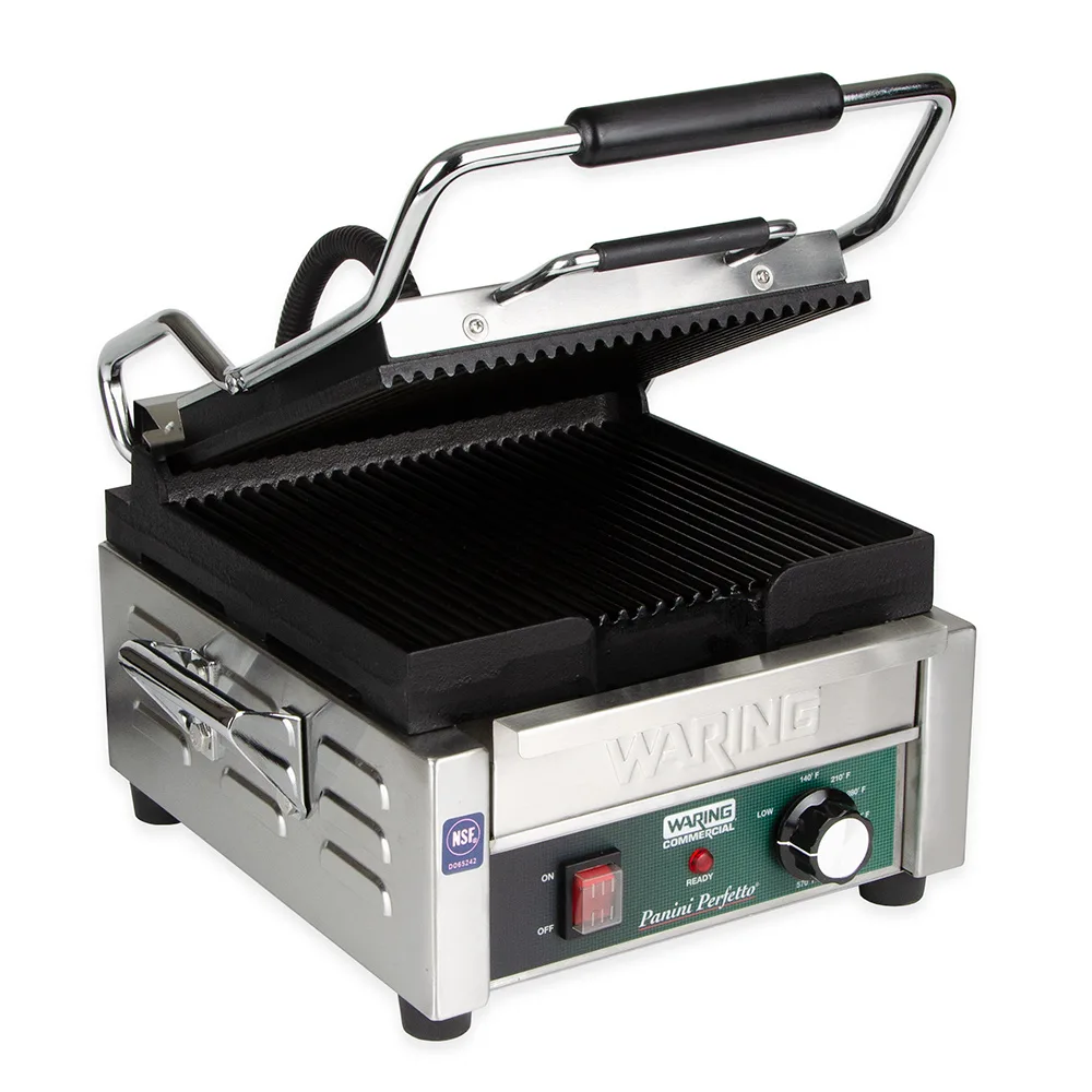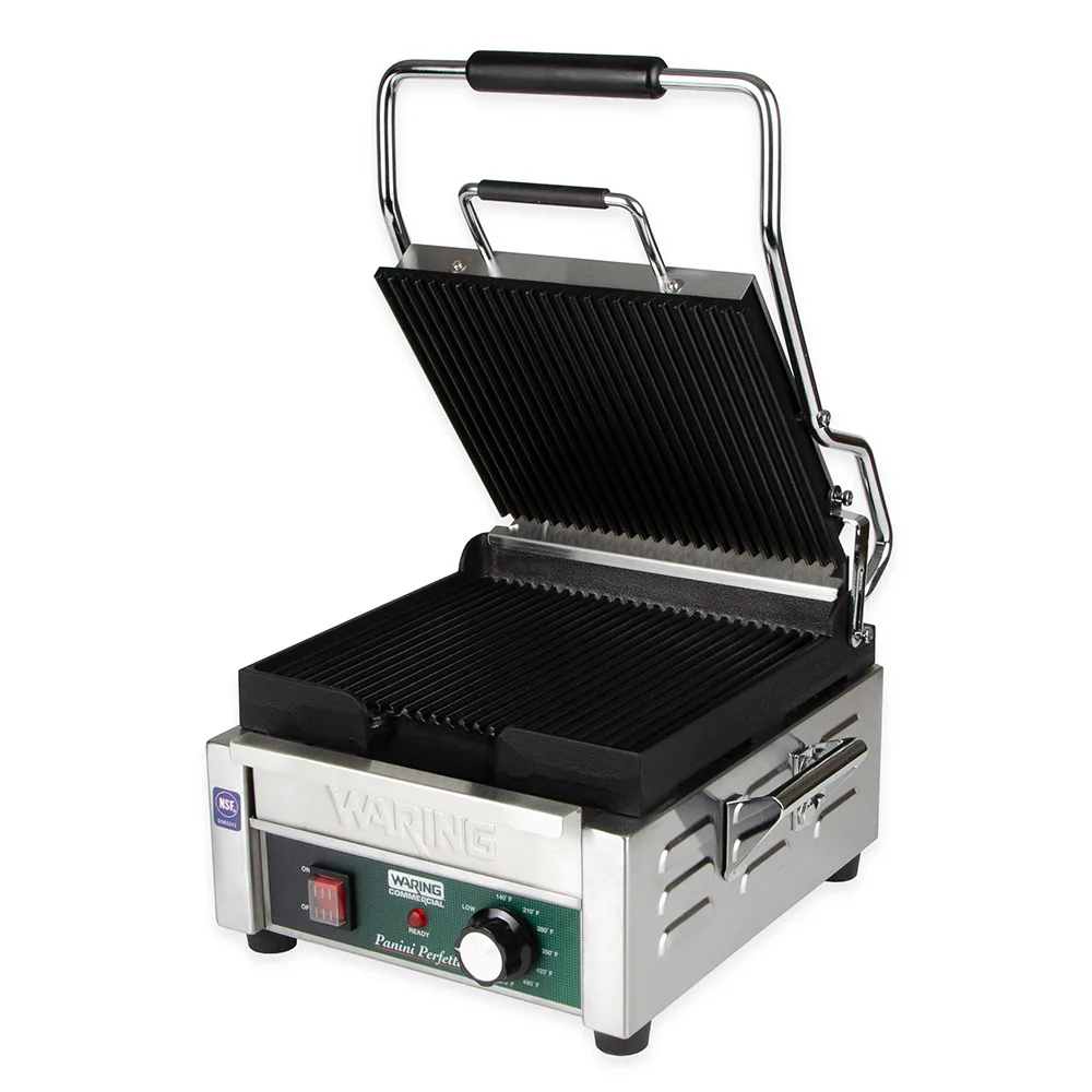 Waring WPG150 Single Commercial Panini Press w/ Cast Iron Grooved Plates, 120v