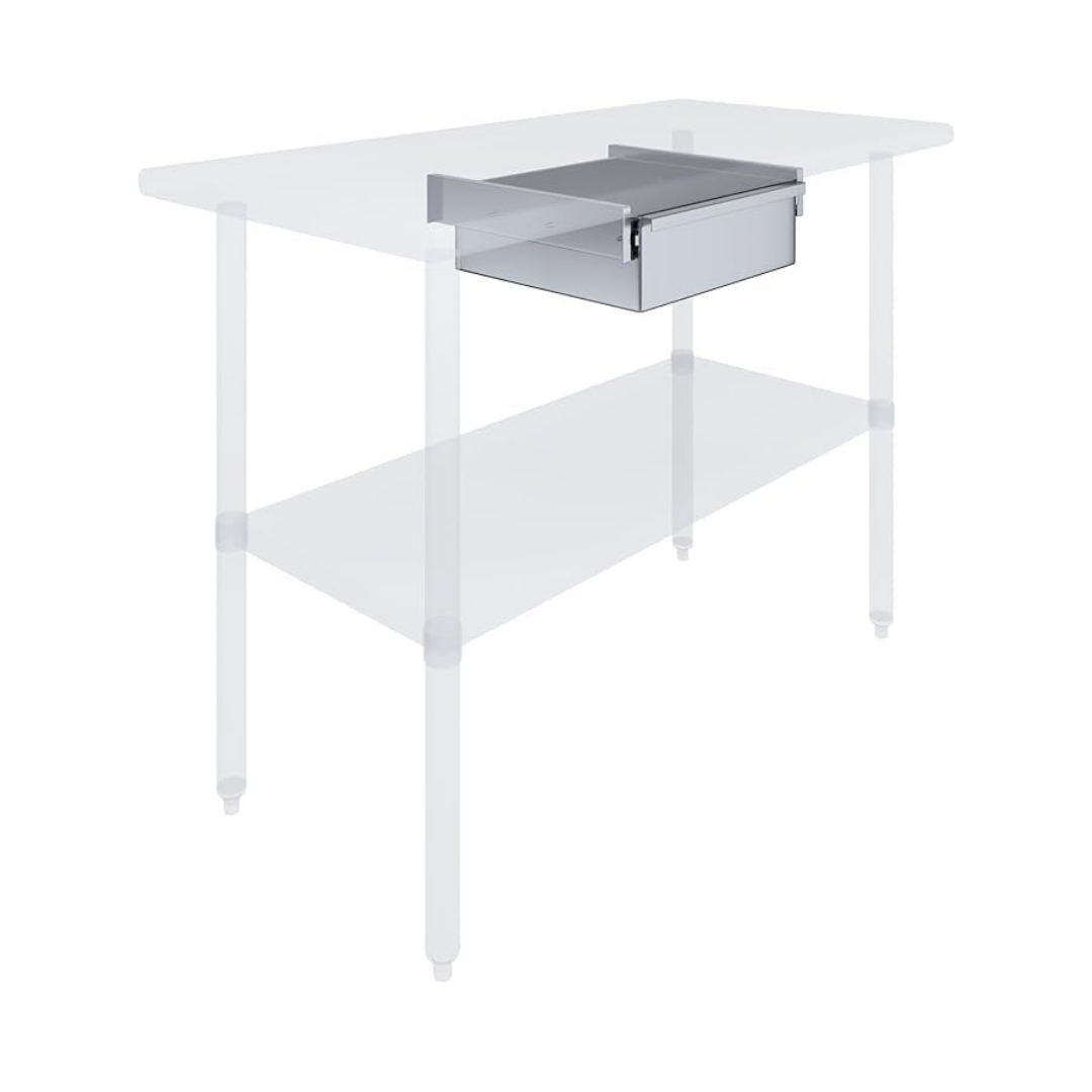 Improve efficiency and keep essential tools within reach with this under-table stainless steel drawer. Designed to mount beneath compatible stainless steel prep tables, this compact drawer adds convenient storage without taking up valuable floor or worktop space.