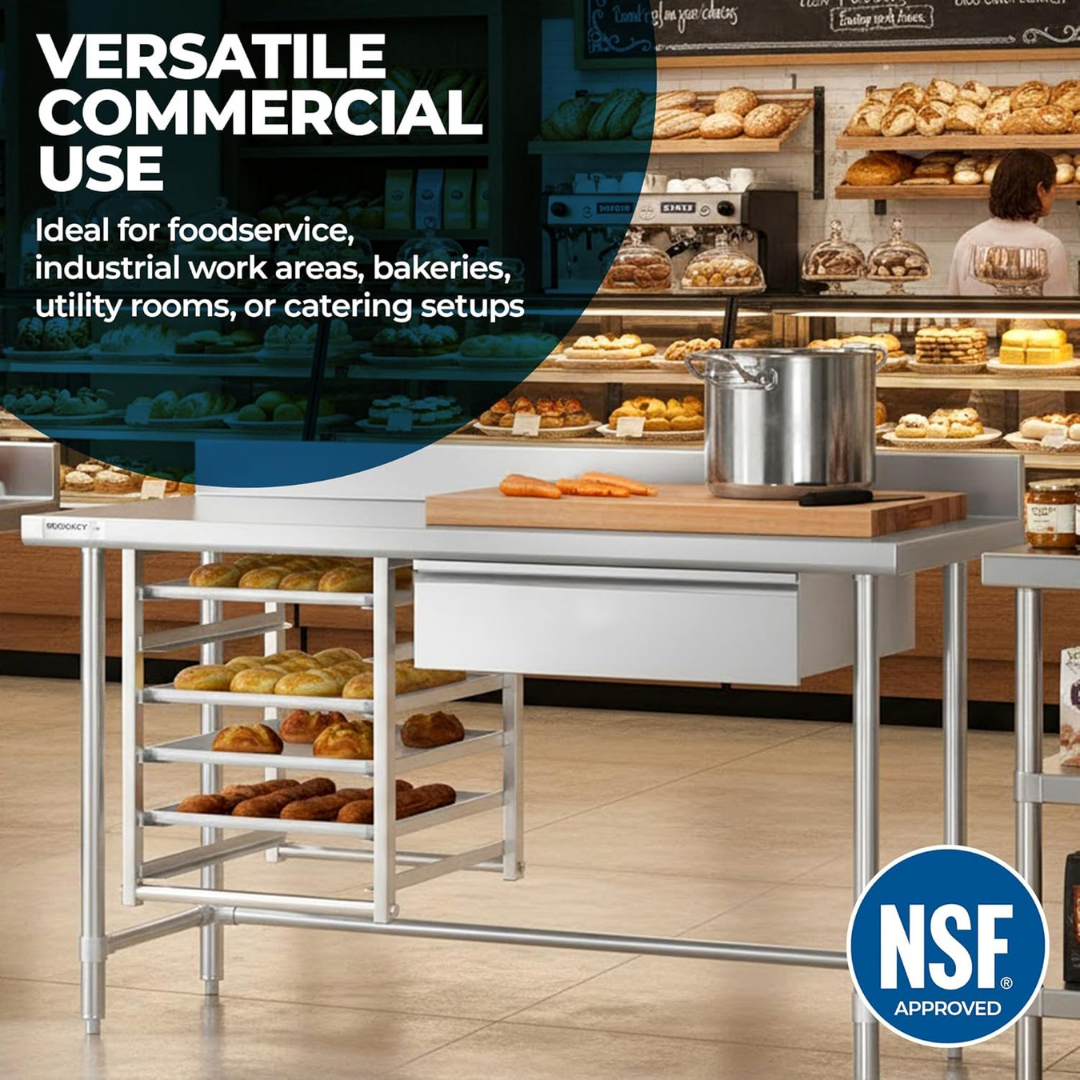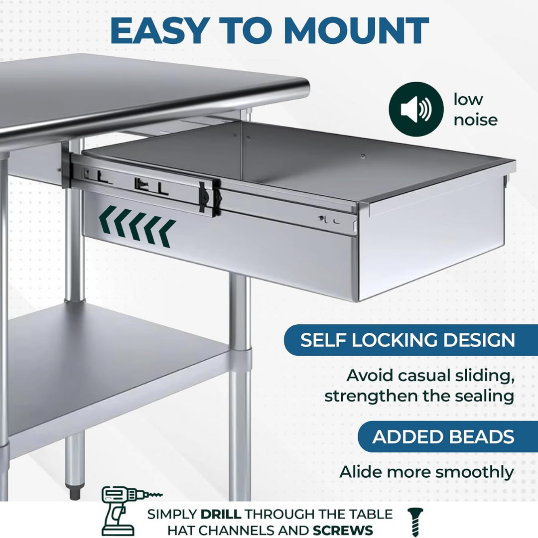 Stainless Steel Drawer for Work Table 18-Gauge 430 SS Heavy Duty Under Table Drawer Commercial Utility Drawer NSF Certified Fits Prep Tables