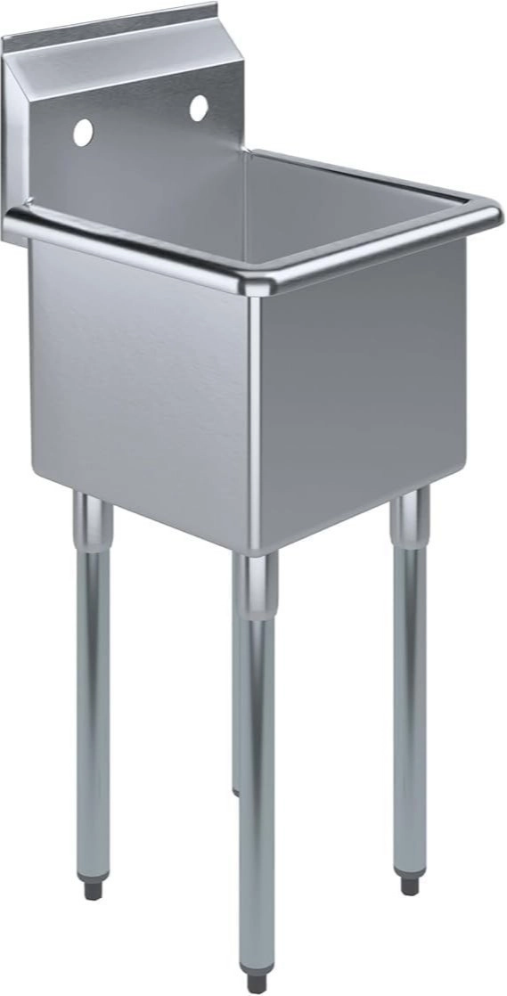 The Stainless Steel Prep & Utility Sink is a space-saving, professional-grade solution for tight workspaces. Made from durable 304 Stainless Steel and NSF certified, this Single Bowl sink is perfect for a Restaurant, Kitchen, Laundry, or Garage. It features a high backsplash and adjustable legs, offering heavy-duty performance in a compact footprint.