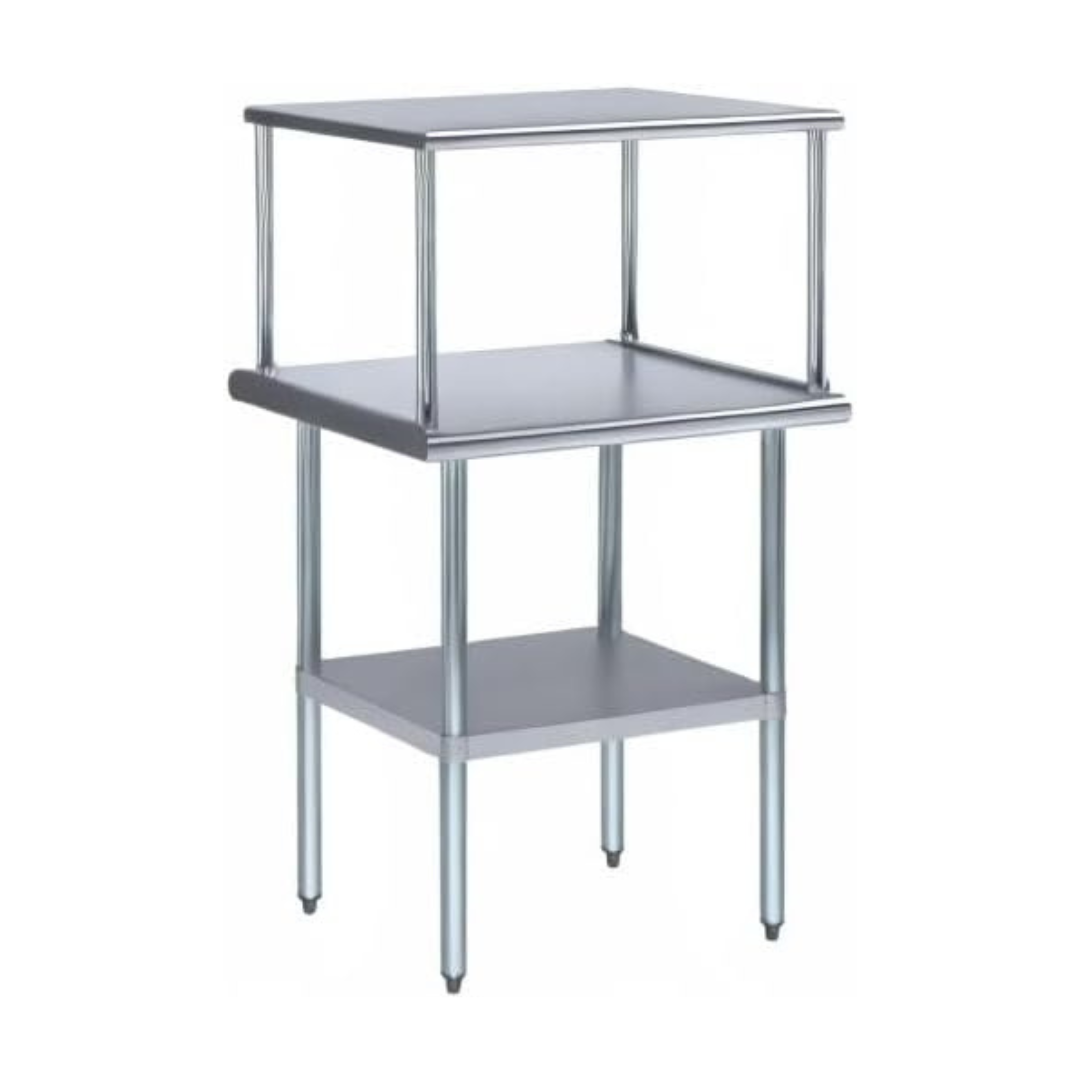 The Stainless Steel Work Table with Overshelf provides a durable and organized prep station for commercial kitchens. Featuring a spacious work surface, a convenient overshelf for frequently used tools, and a lower shelf for additional storage, it helps keep your workspace efficient, clean, and ready for busy food preparation tasks.