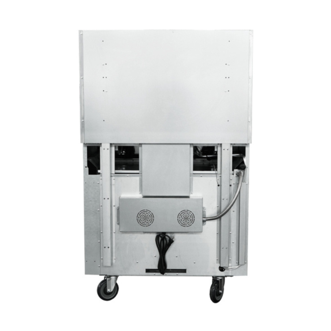 Equipped with casters for easy movement, this unit allows for convenient cleaning and maintenance. Locking wheels help keep the range securely in place during operation, with optional legs available for a stationary setup.