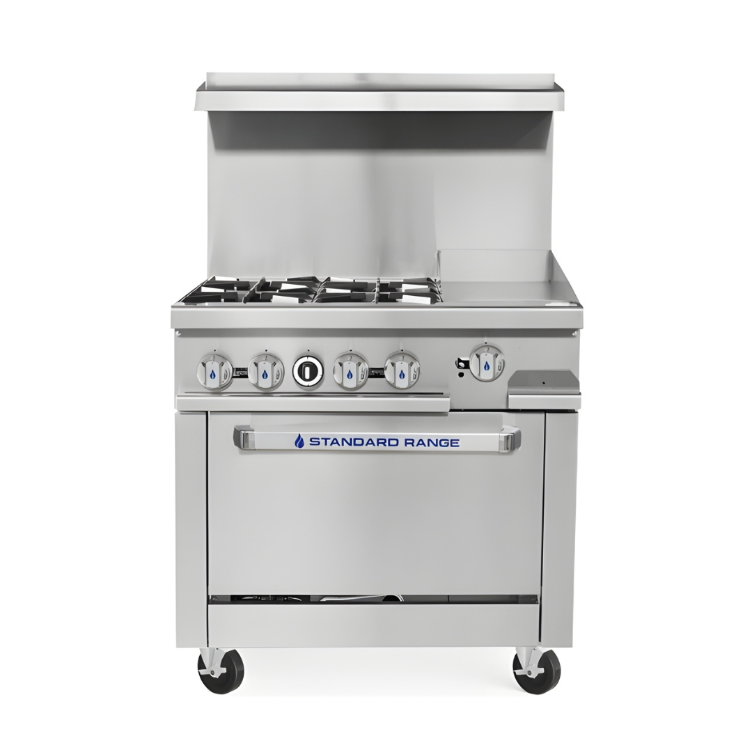 Standard Range SR-R36-12MG-LP 36″ Liquid Propane Commercial Range with 4 Burners 12″ Griddle Top 1 Oven 153,000 BTU