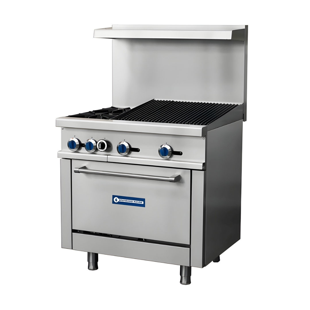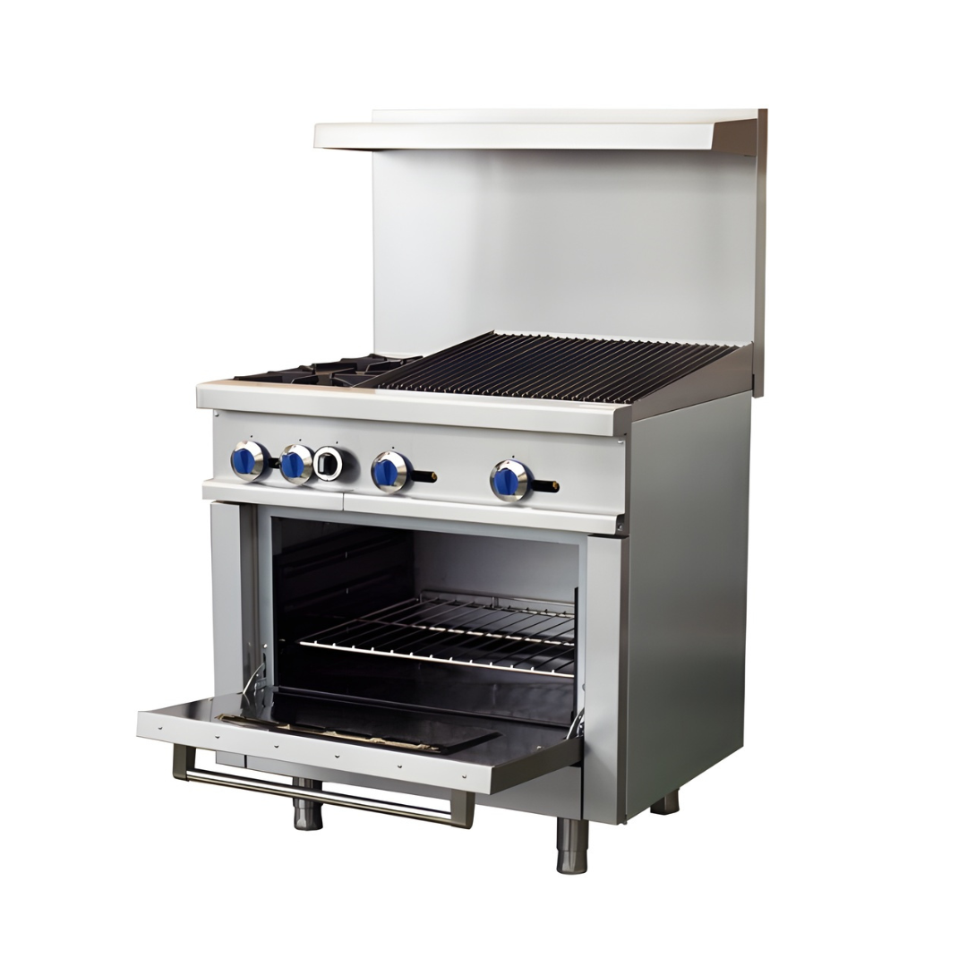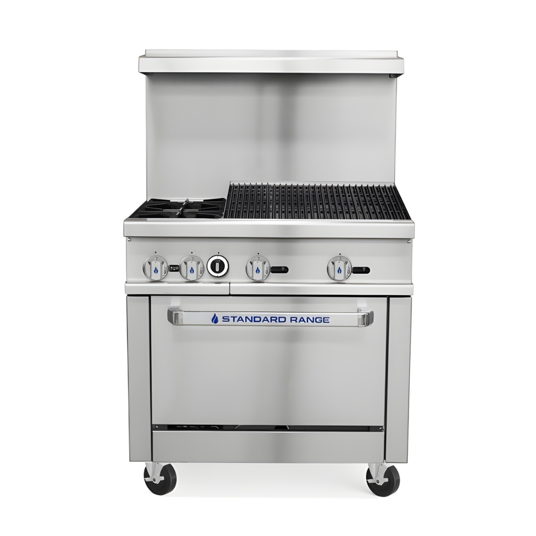 Standard Range SR-R36-24CB-36″ Commercial Range with Char-Broiler Top 2 Burners 1 Oven 163,000 BTU