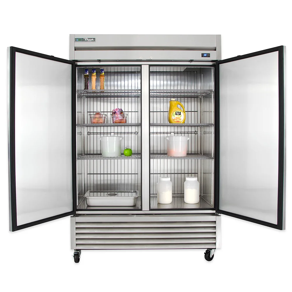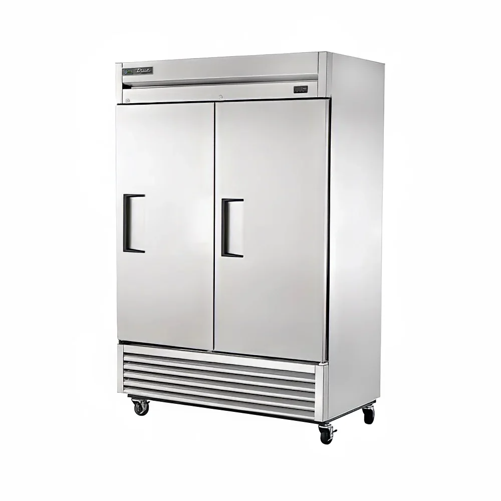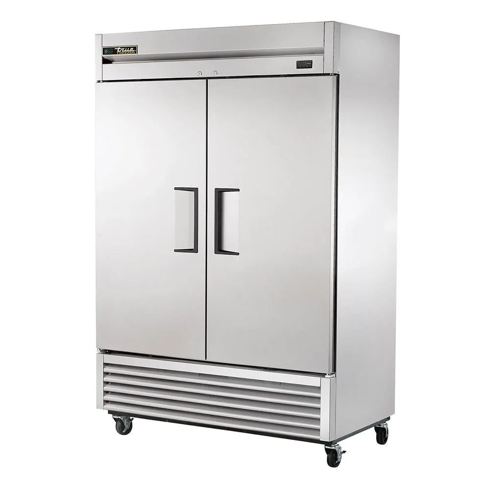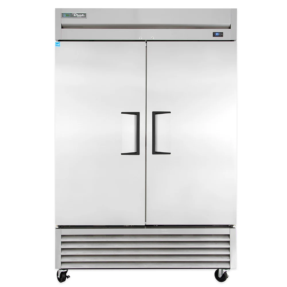 The True T-49F-HC is a two-section commercial reach-in freezer with a stainless steel build, bottom-mounted refrigeration, and -10°F temperature performance. Ideal for restaurants and foodservice kitchens seeking energy-efficient frozen storage.