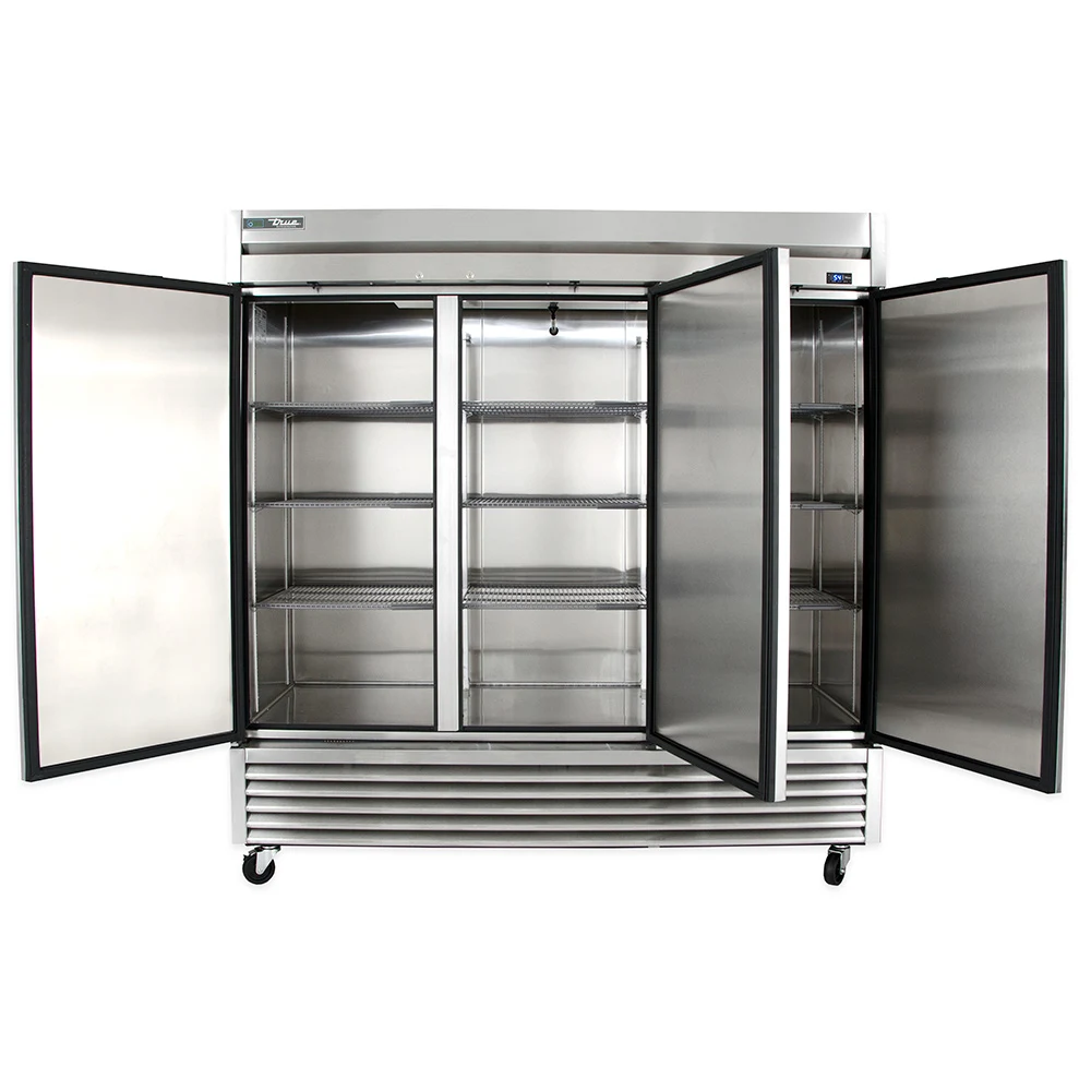 True T-72-HC 78 1/10″ Three Section Reach In Refrigerator 3 Left / Right Hinge Solid Doors 115v