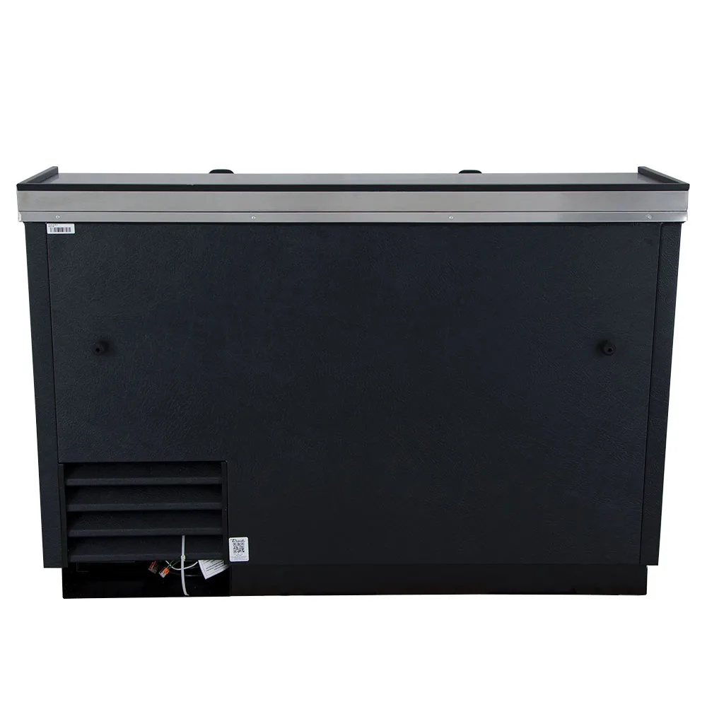 Built for durability, the exterior features black powder-coated cold-rolled steel that resists chipping and wear, while the stainless steel countertop and sliding lids handle heavy daily use. Inside, a galvanized steel liner wipes clean easily, and foamed-in-place polyurethane insulation helps retain cold air. A welded steel frame rail reinforces the cabinet for added structural strength, making this unit well suited for bars, restaurants, and concession operations.