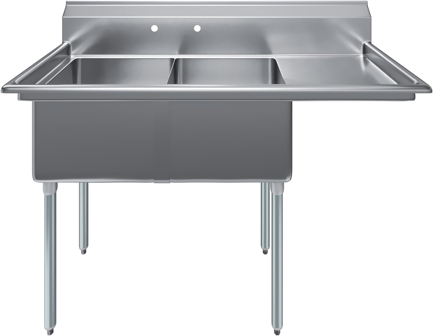 57″ x 24″ two compartment stainless steel sink with right drainboard, built from durable 304 stainless steel. Ideal for commercial kitchens, laundry, and utility use. NSF certified.