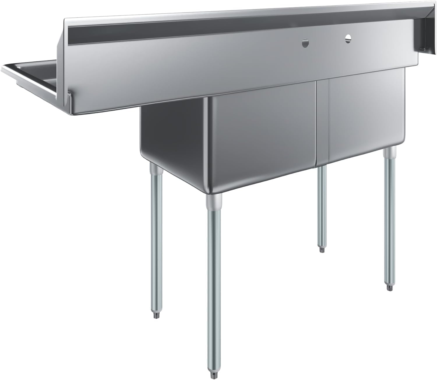 57″ x 24″ Two Compartment Stainless Steel Prep & Utility Sink with Right Drainboard – NSF Certified Commercial Sink