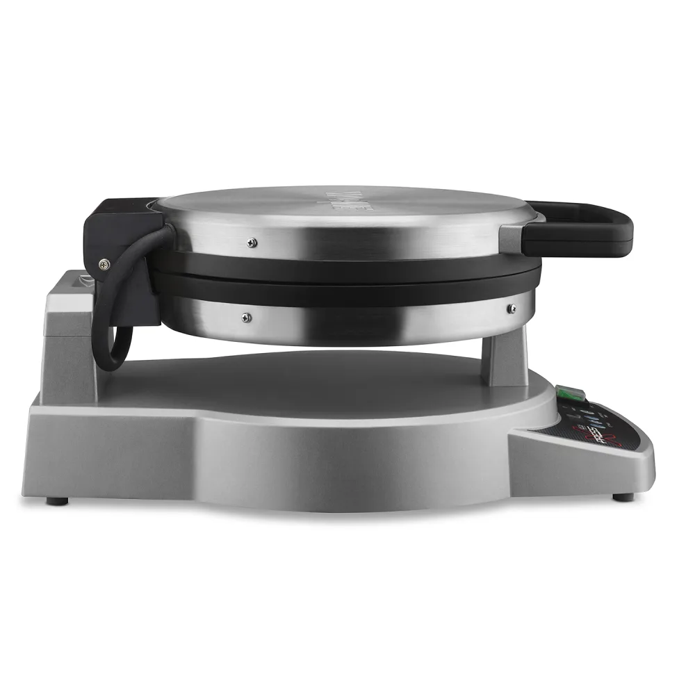 From the Xpress™ series, the Waring WSC300 multipurpose cooktop features a stainless steel base that’s brushed to create a textured appearance and is paired with two 13 1⁄2-inch aluminum plates. To heighten performance and prevent sticking, these plates have a triple-layer of Whitford QuanTanium® coating across their surface and include embedded heating elements to speed up cooking. This machine is designed for making single servings of strawberry and cream crepes, homemade tortillas, and thick pitas.