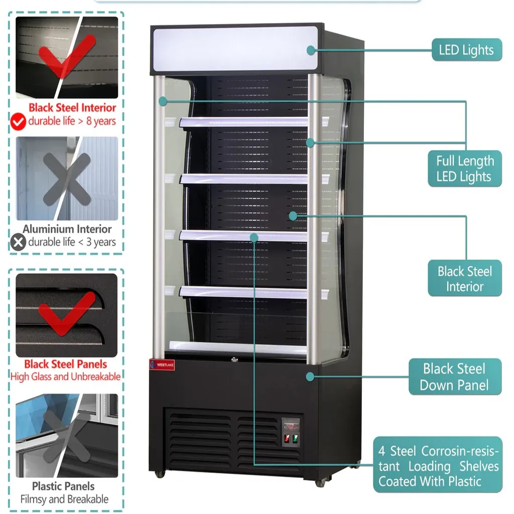 Keep your beverages perfectly chilled and easily accessible with the Westlake LD3-2Z-C2. Designed for high-traffic retail environments, this open-air grab-and-go cooler combines a sleek aesthetic with powerful cooling performance. Whether you are stocking craft beers, premium sodas, or fresh juices, the vibrant LED lighting and crystal-clear display ensure your products are the star of the show, driving impulse purchases and boosting your bottom line.