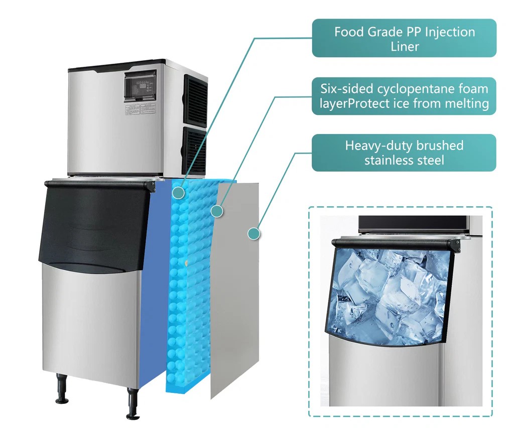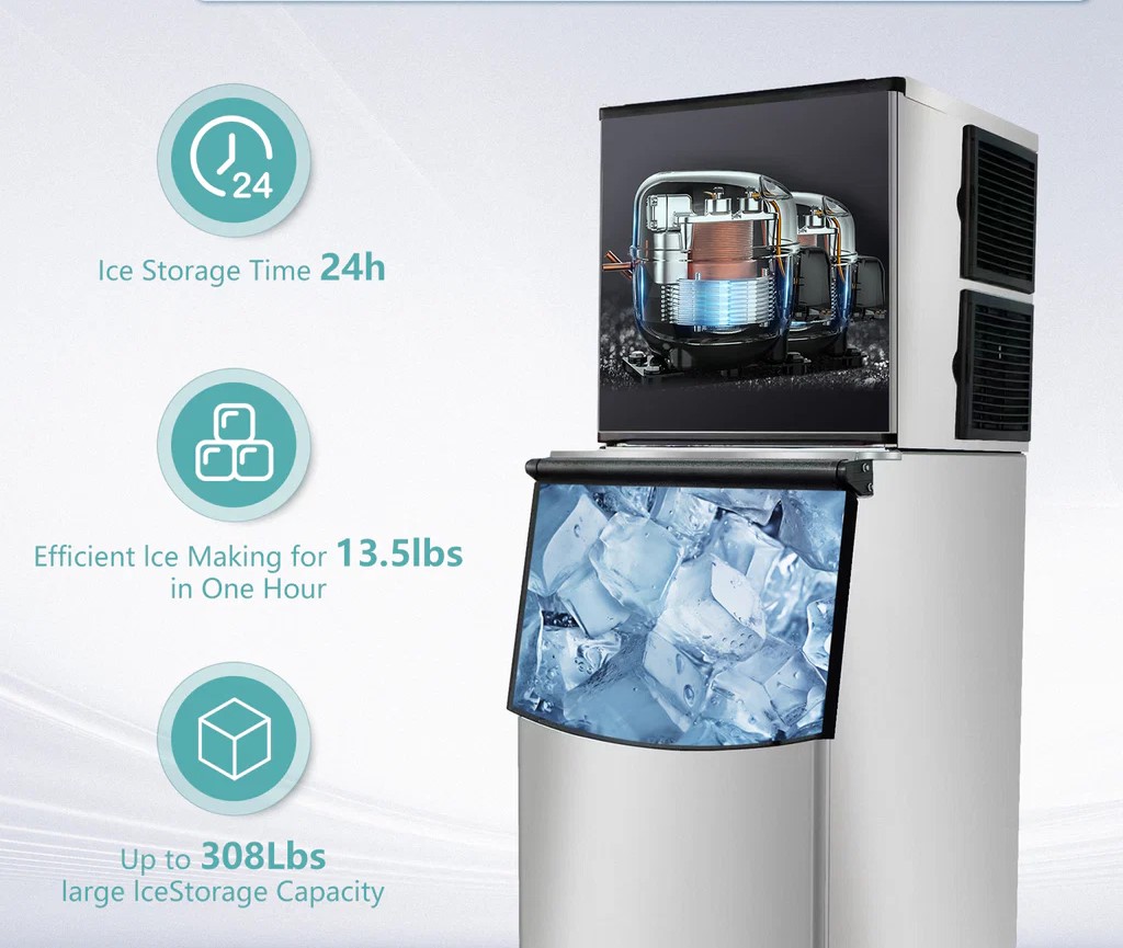 Westlake SK-329 Commercial Ice Machine, Full Cube Ice Maker Machine 350 lbs Ice with 308lbs Storage Capacity