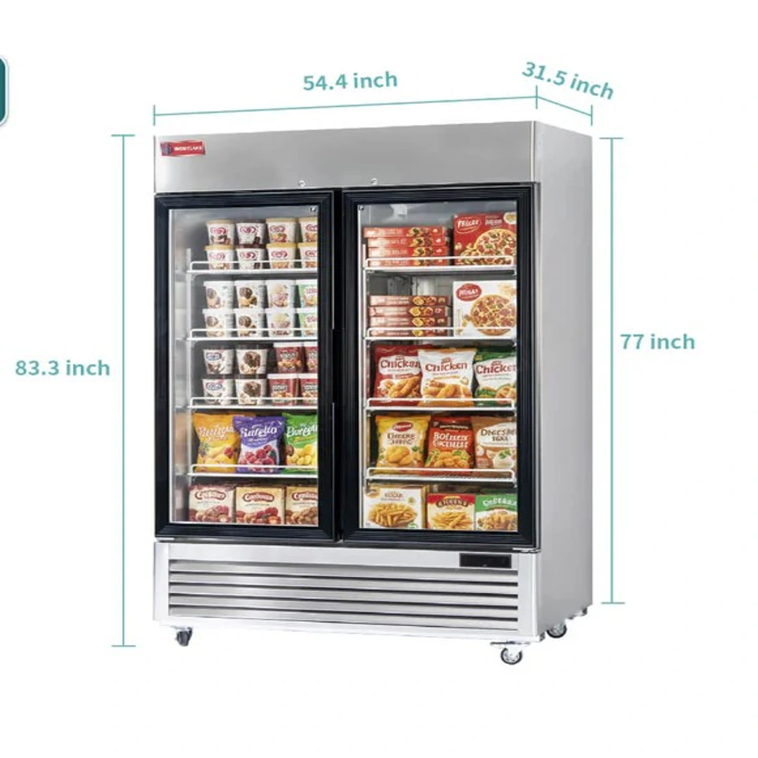 WESTLAKE Commercial Freezer Merchandiser 54″ 2-Glass Door 49 Cu.ft Stainless Steel | ETL DOE Reach-In Display for Restaurant