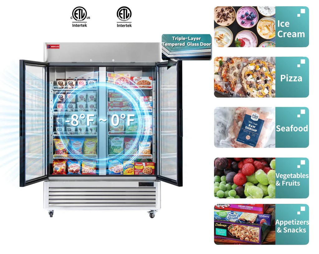 Whether you’re showcasing frozen treats in a retail space or organizing essential ingredients in a busy restaurant, the WK-49FG provides the perfect visibility and temperature stability to keep your inventory at peak freshness. With its eco-friendly R290 refrigerant and ETL/NSF certifications, you can rest easy knowing you’re investing in a reliable, compliant, and sustainable cooling solution.