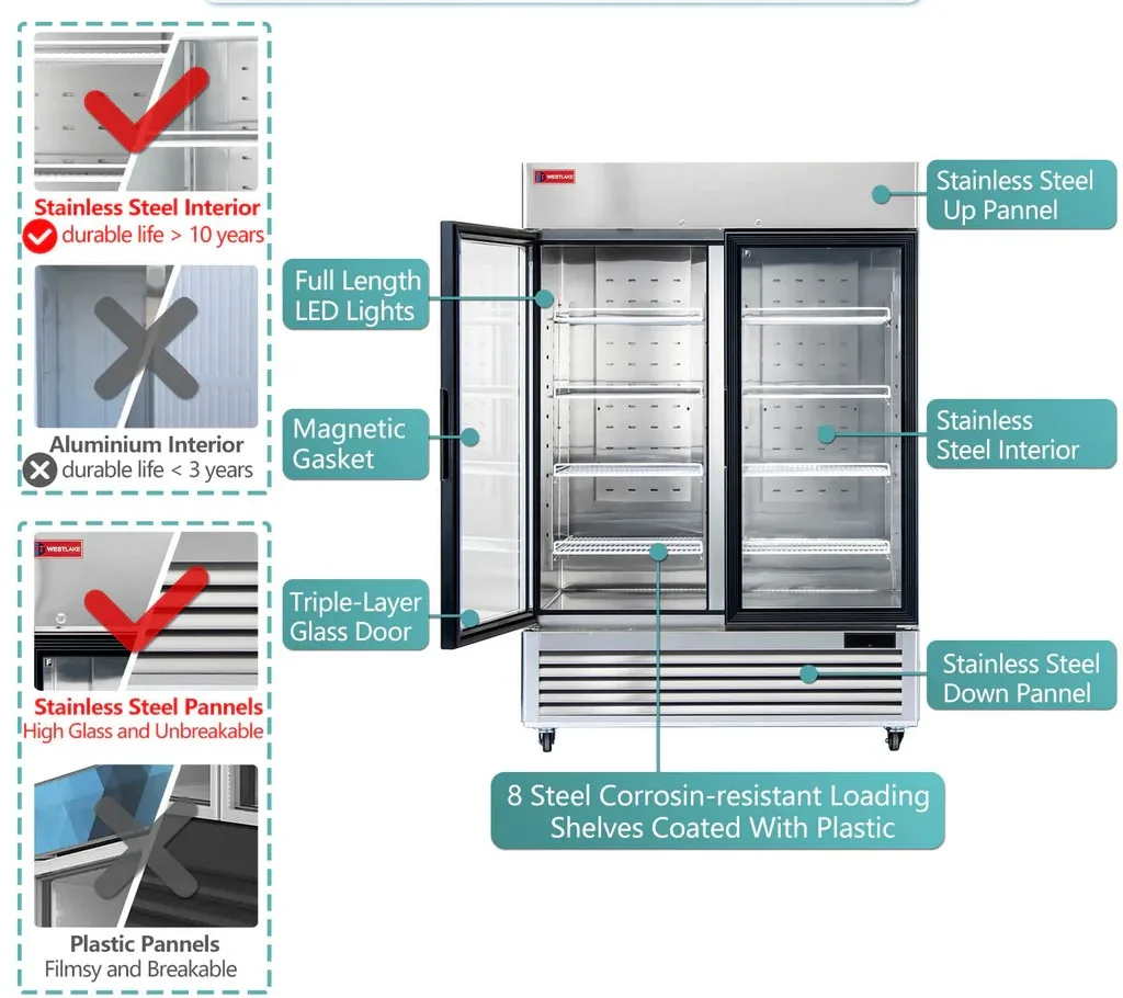 Elevate your kitchen’s efficiency and display quality with the Westlake WK-49FG. This heavy-duty, double-section glass door freezer is engineered for high-volume commercial environments that demand both sleek aesthetics and rock-solid performance.